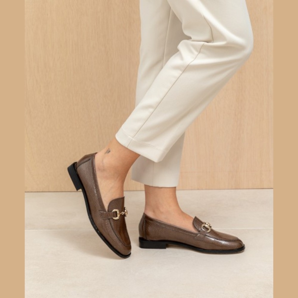 Mocasines Bidasoa: Estilo y confort en cada paso. Descubre la comodidad y sofisticación de nuestros mocasines Bidasoa. Fabricados en piel charol de alta calidad, estos zapatos cuentan con un elegante adorno dorado en forma de estribo y una puntera semicuadrada. Su tacón bajo de 2 cm y su plantilla acolchada te brindarán una sensación de confort durante todo el día. La suela de cuerolite garantiza una mayor flexibilidad y durabilidad. ¡El complemento perfecto para cualquier outfit!