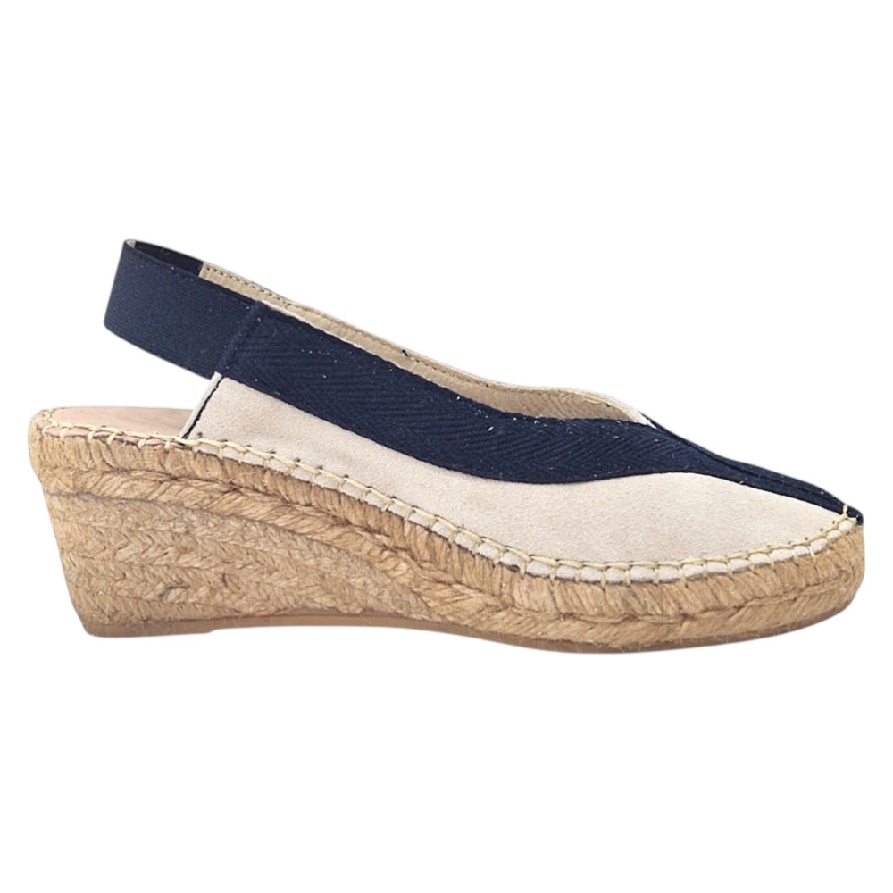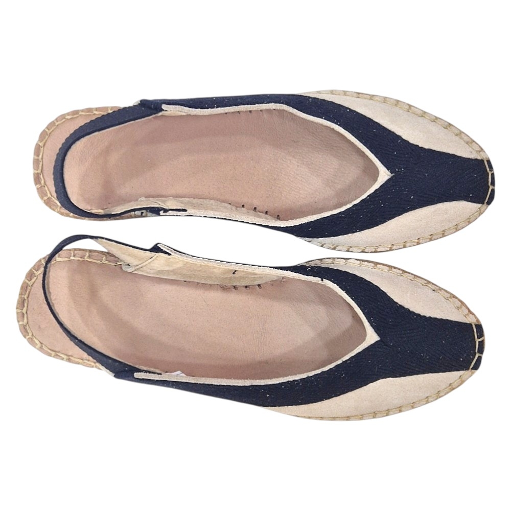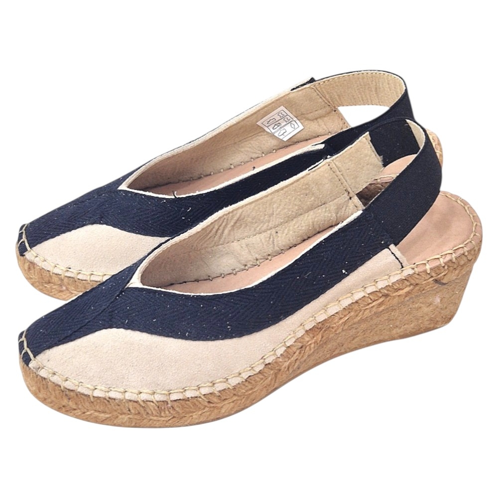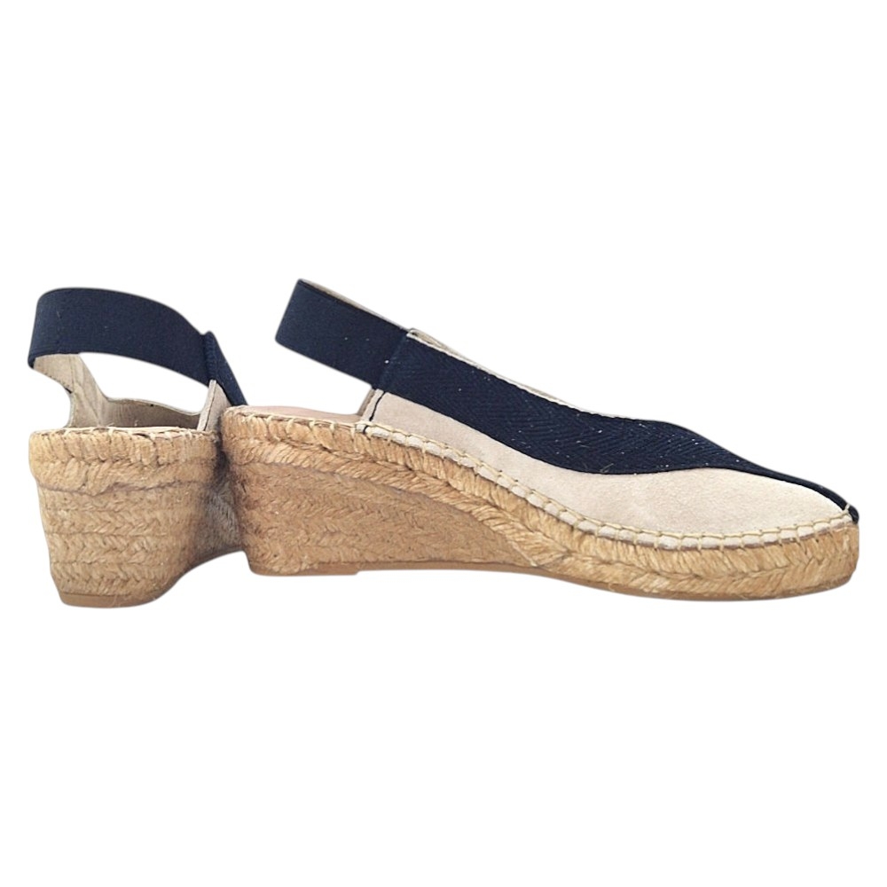 Descubre el encanto atemporal de nuestras alpargatas La Mallorquina, modelo M.259-MERCHE, en un sofisticado color crudo. Confeccionadas con una cuña de esparto tradicional y un diseño moderno que combina tiras anchas en contraste de azul marino y crudo, estas alpargatas son la elección perfecta para la mujer que busca estilo y confort. La tira elástica trasera asegura un ajuste cómodo y seguro, ideal para los días cálidos de verano. Perfectas para un look casual chic o para complementar tu atuendo de vacaciones.