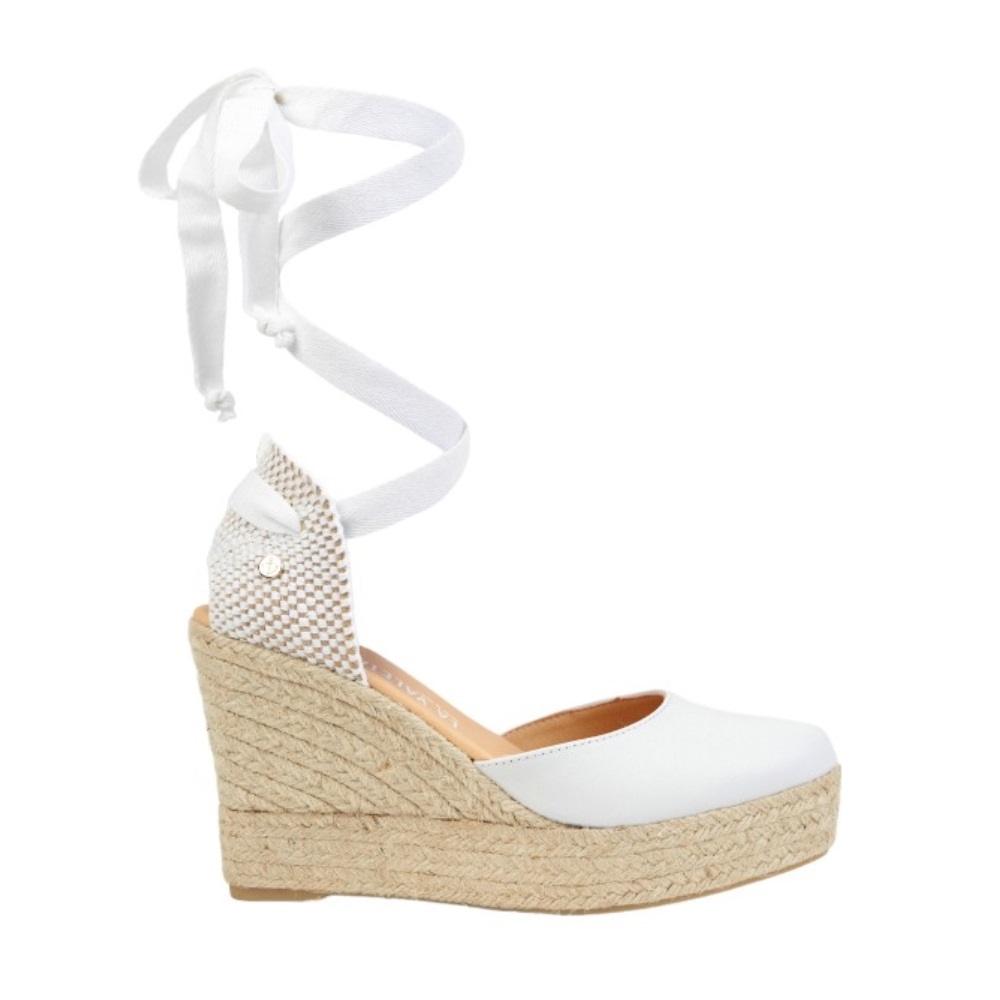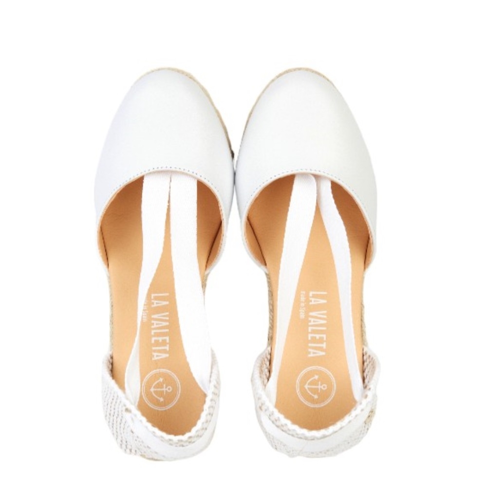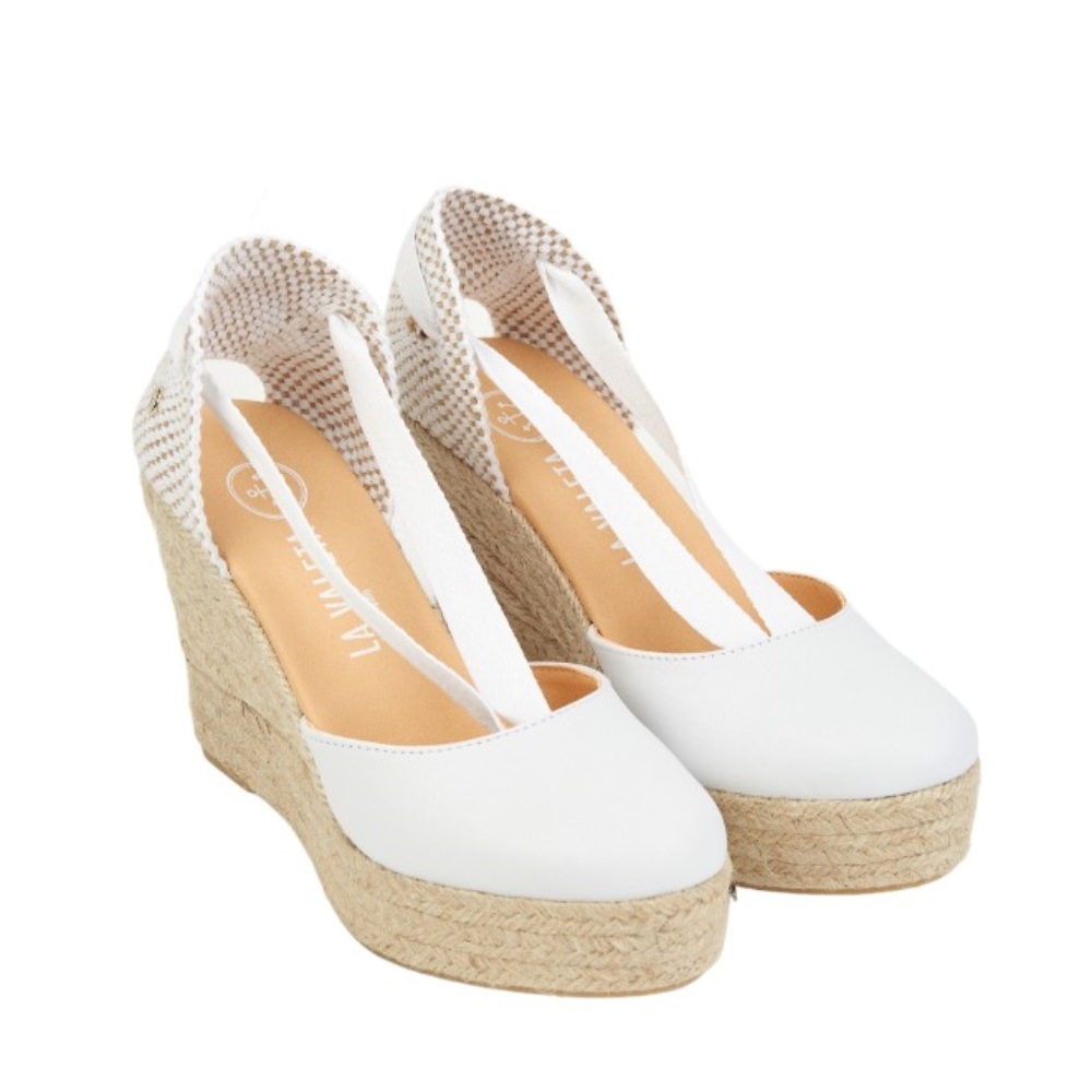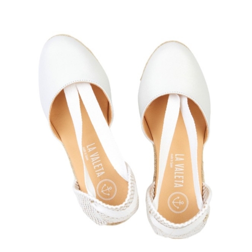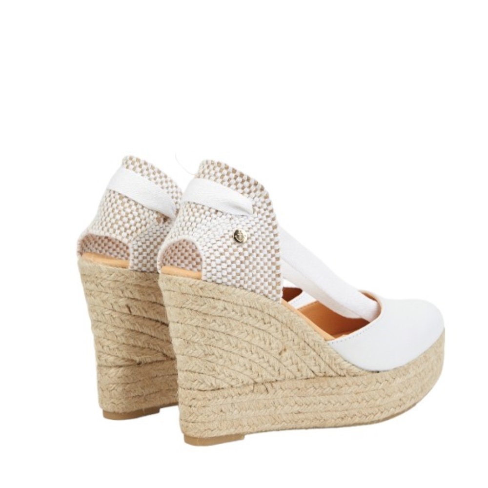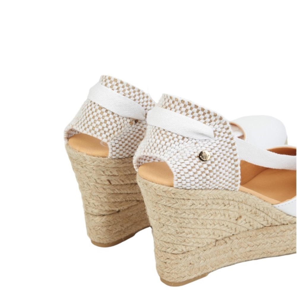 Las CHARLENE BLANCA son unas de nuestras alpargatas con cuña. Presentan un diseño fantástico y elegante, elaborado en piel de napa blanca y cuentan con una suela de yute natural y una cuña de 10 cm de altura. Estas espadrilles son hechas a mano en España, con una fabricación artesanal.