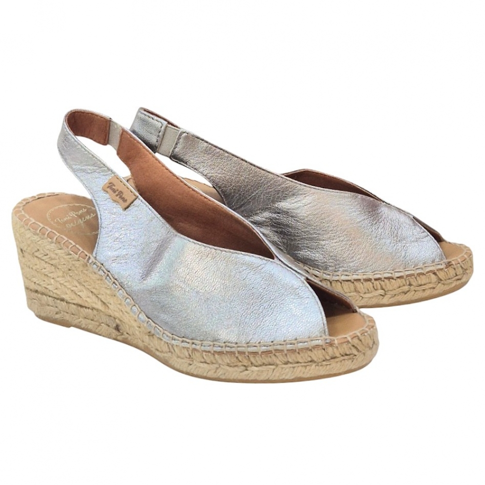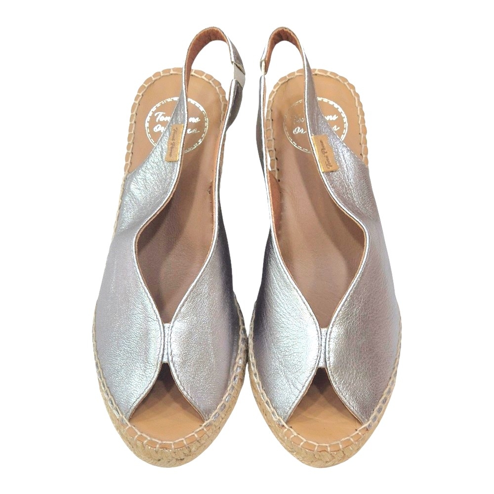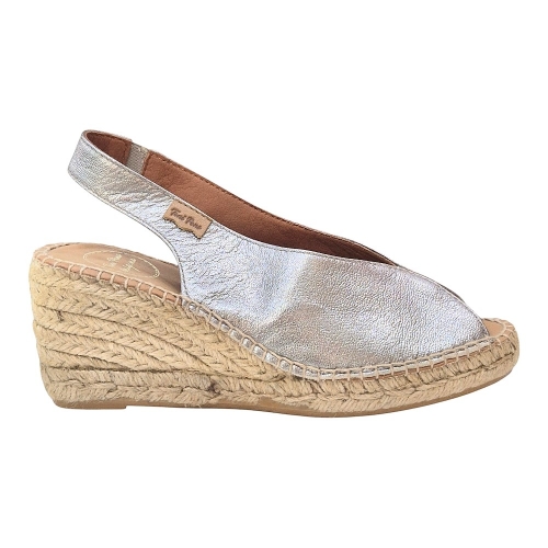 Eleva tus looks de temporada con la LAILA-P de Toni Pons, una alpargata de cuña que redefine el concepto de elegancia artesanal. Este modelo destaca por su sofisticado acabado en piel color acero, aportando un brillo sutil y moderno que combina a la perfección tanto con estilismos casuales como con eventos especiales de verano.