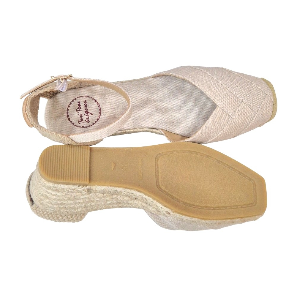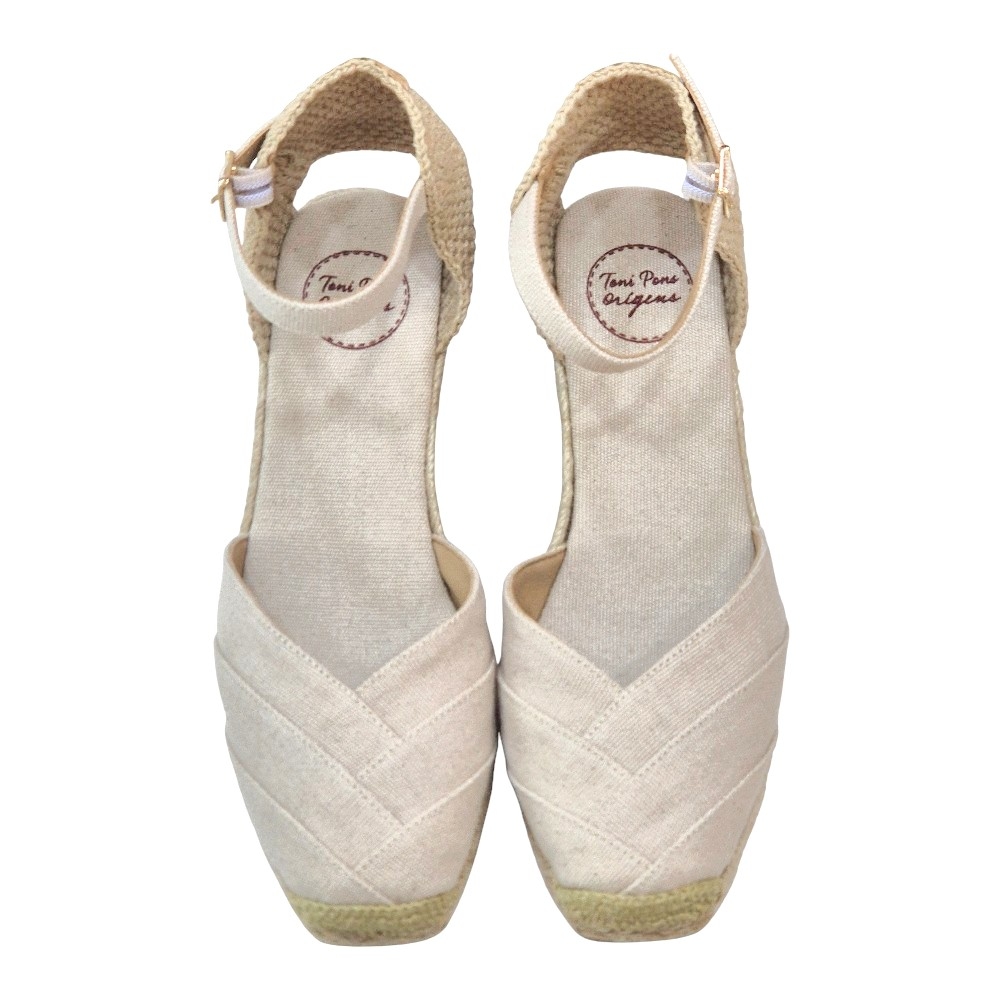Cuña de Yute: La suela está fabricada en trenzado de yute natural, el sello de identidad de la línea Origens de Toni Pons, que garantiza autenticidad y ligereza.