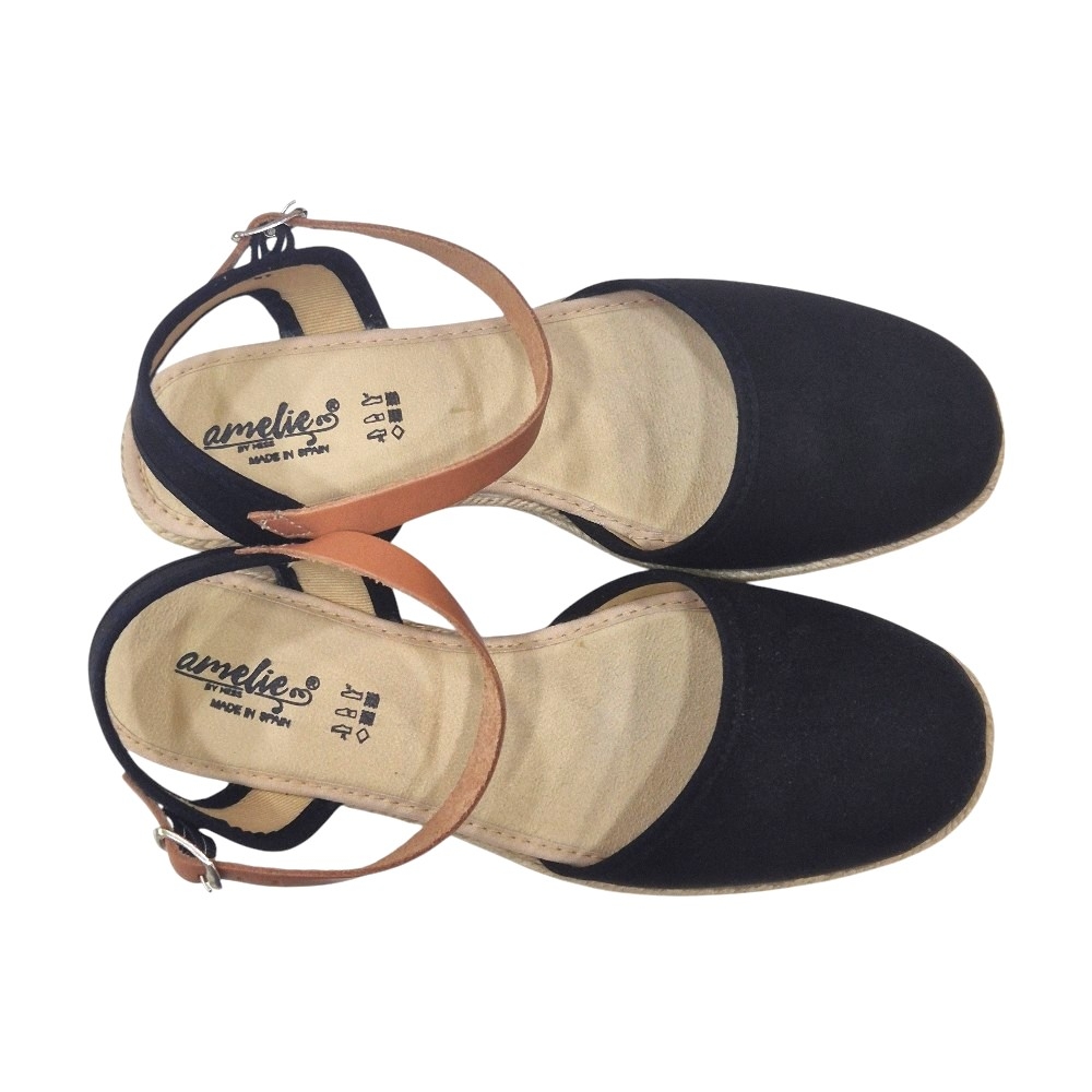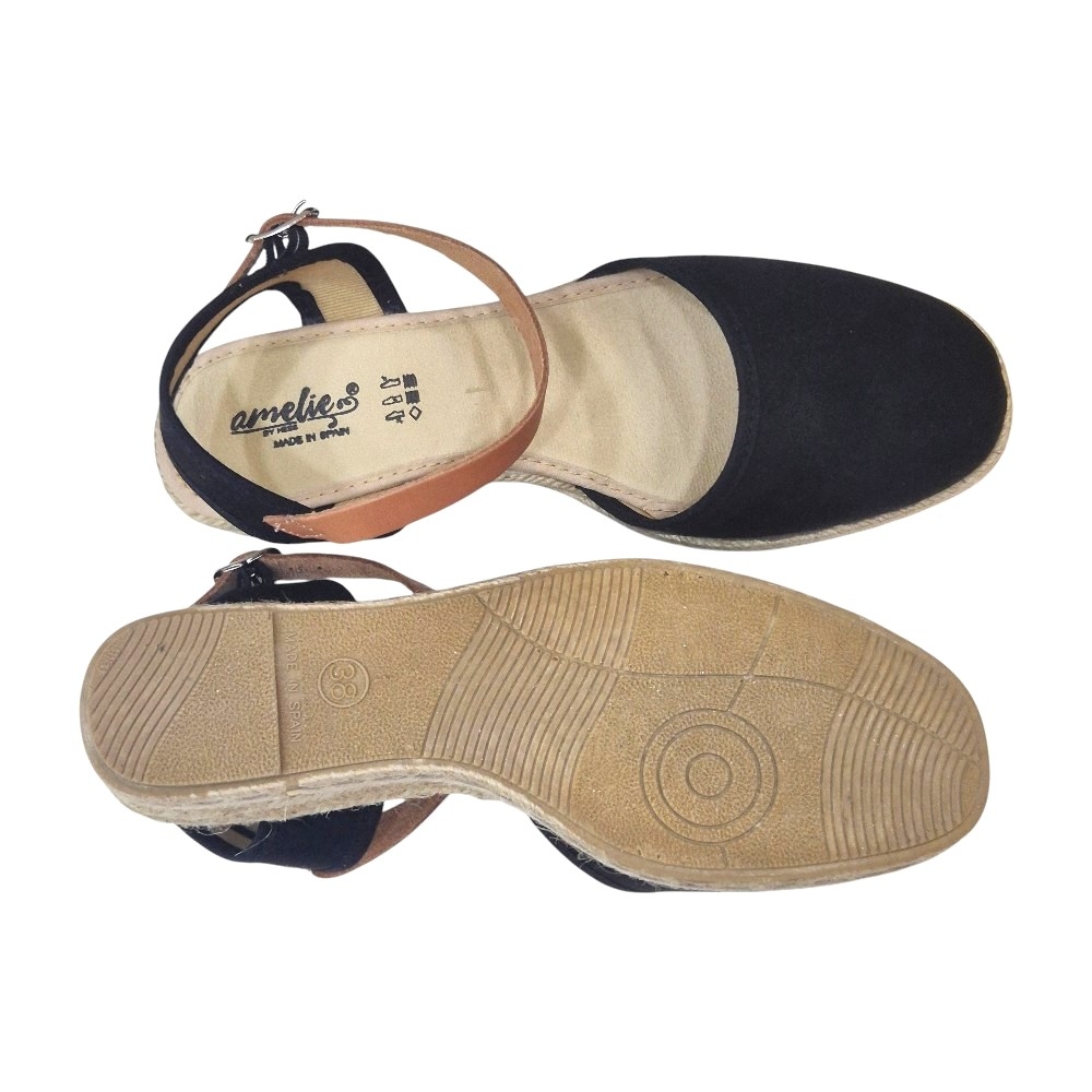 Comodidad Interior: La plantilla acolchada y forrada en un tono beige suave ofrece una pisada placentera. Presenta el logotipo de la marca y la inscripción "Made in Spain".