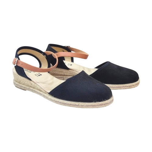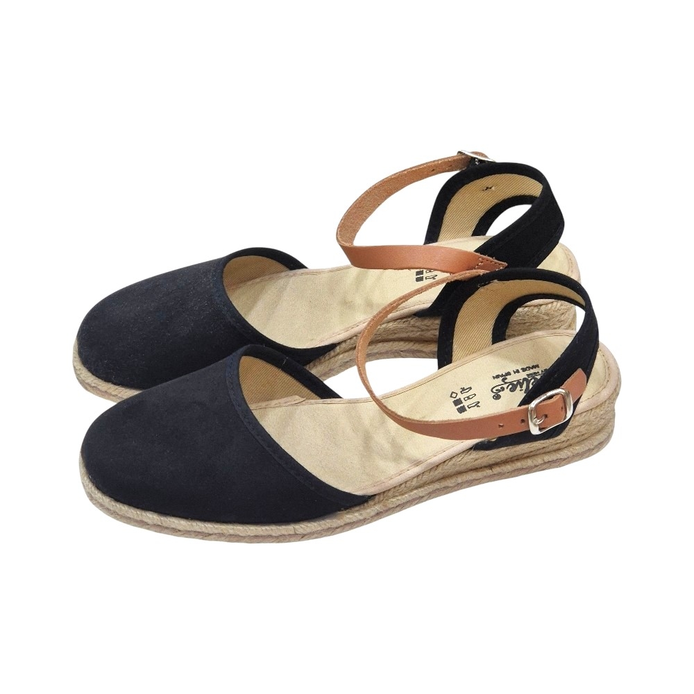 Alpargatas de Cuña Baja para Mujer - Color Negro Suede - Modelo 3760