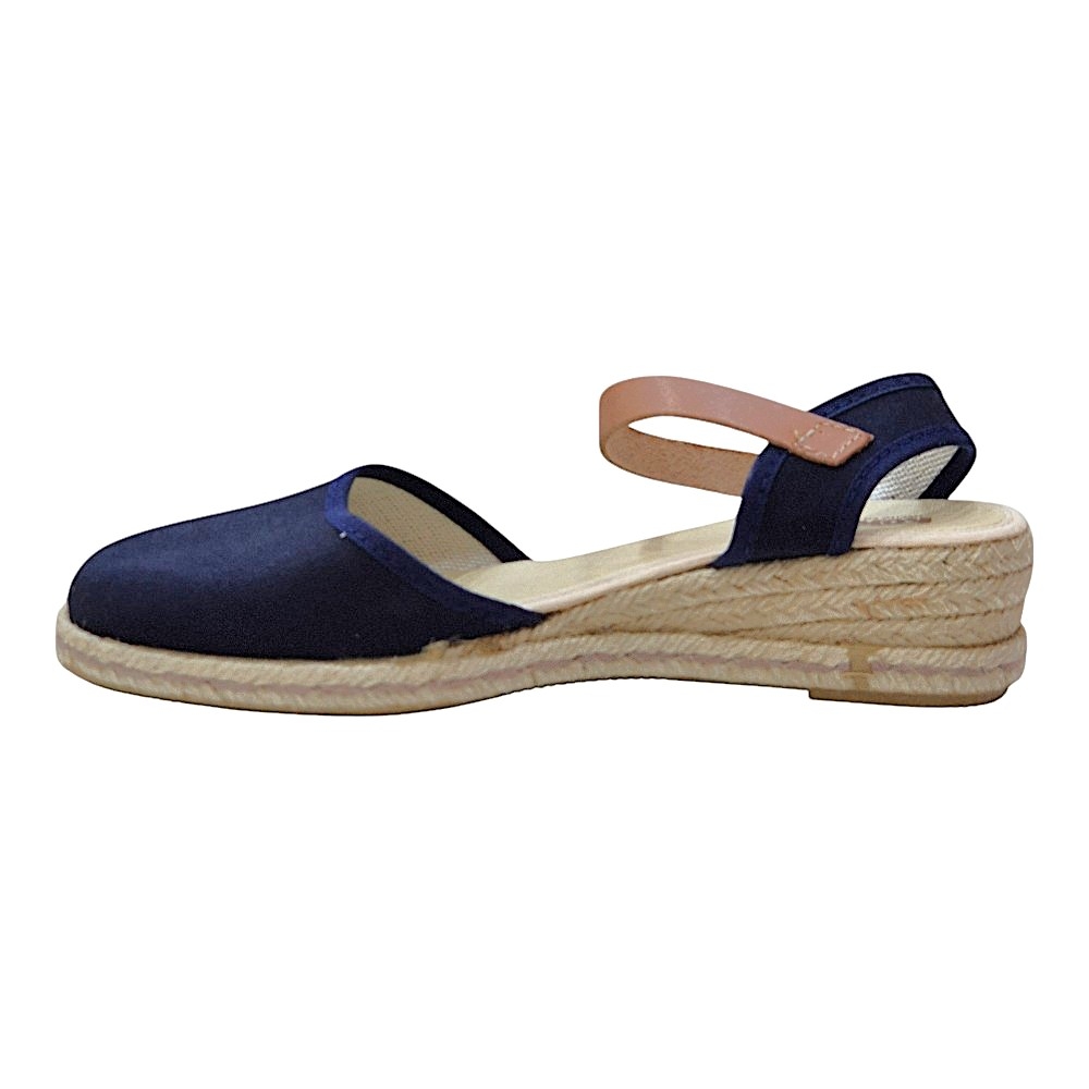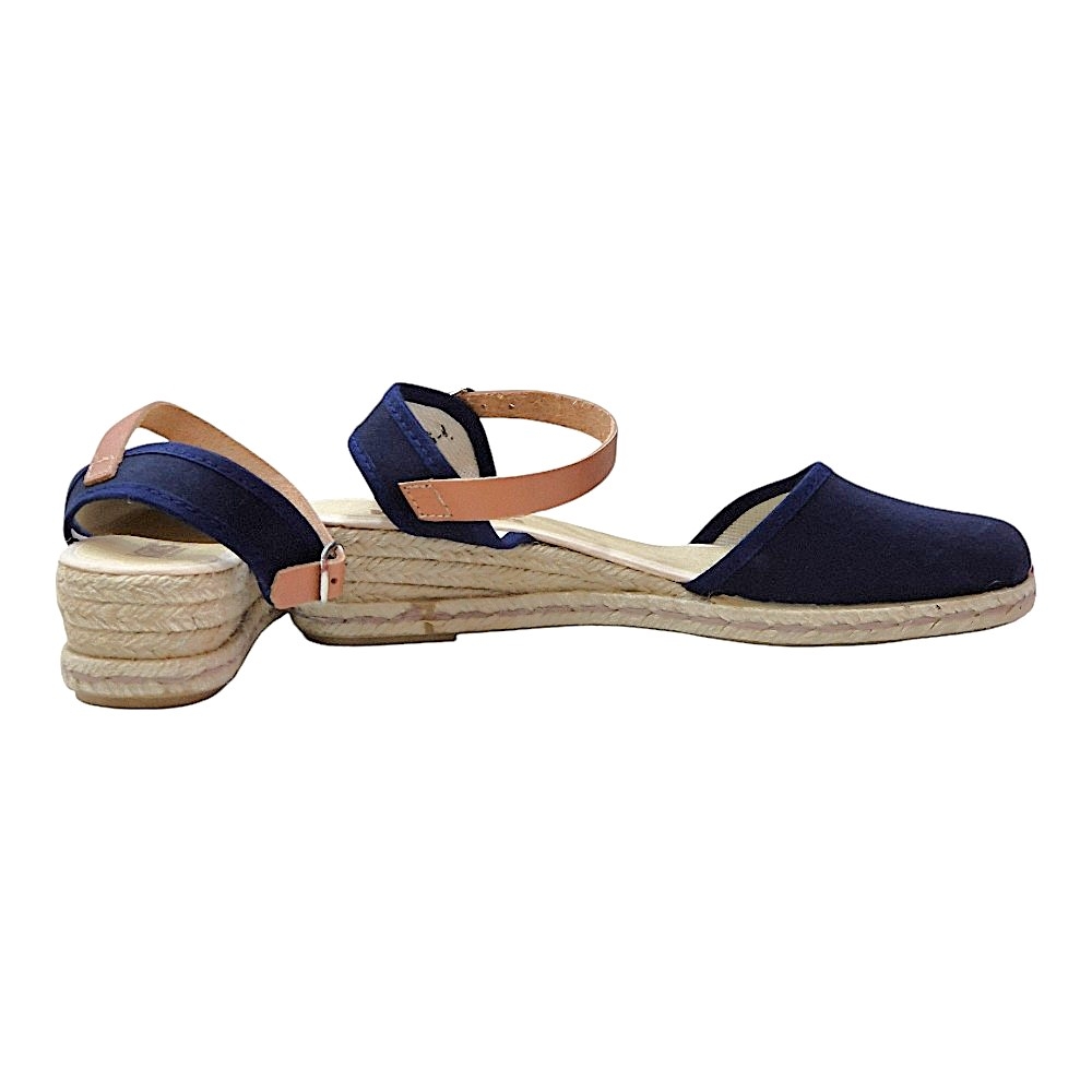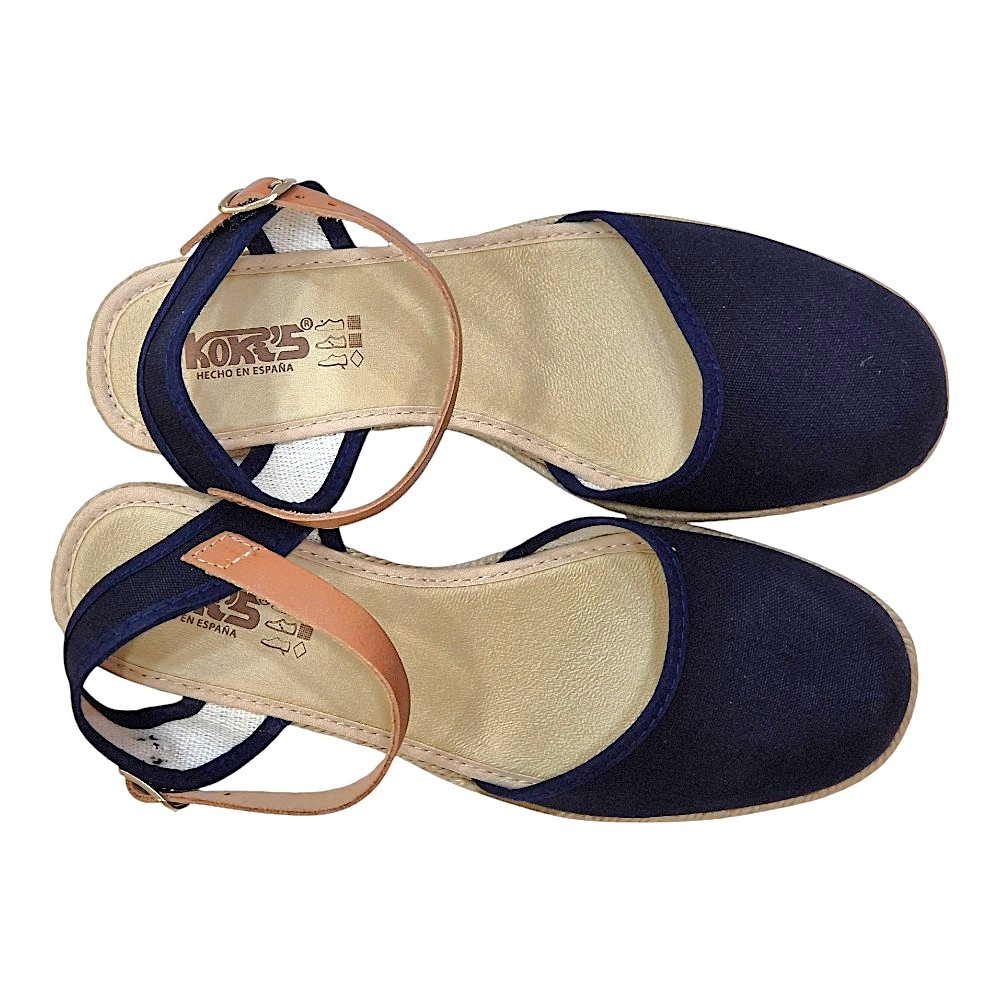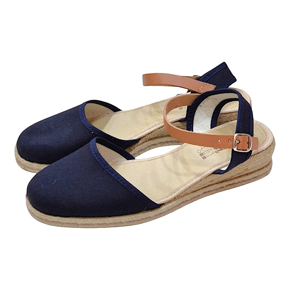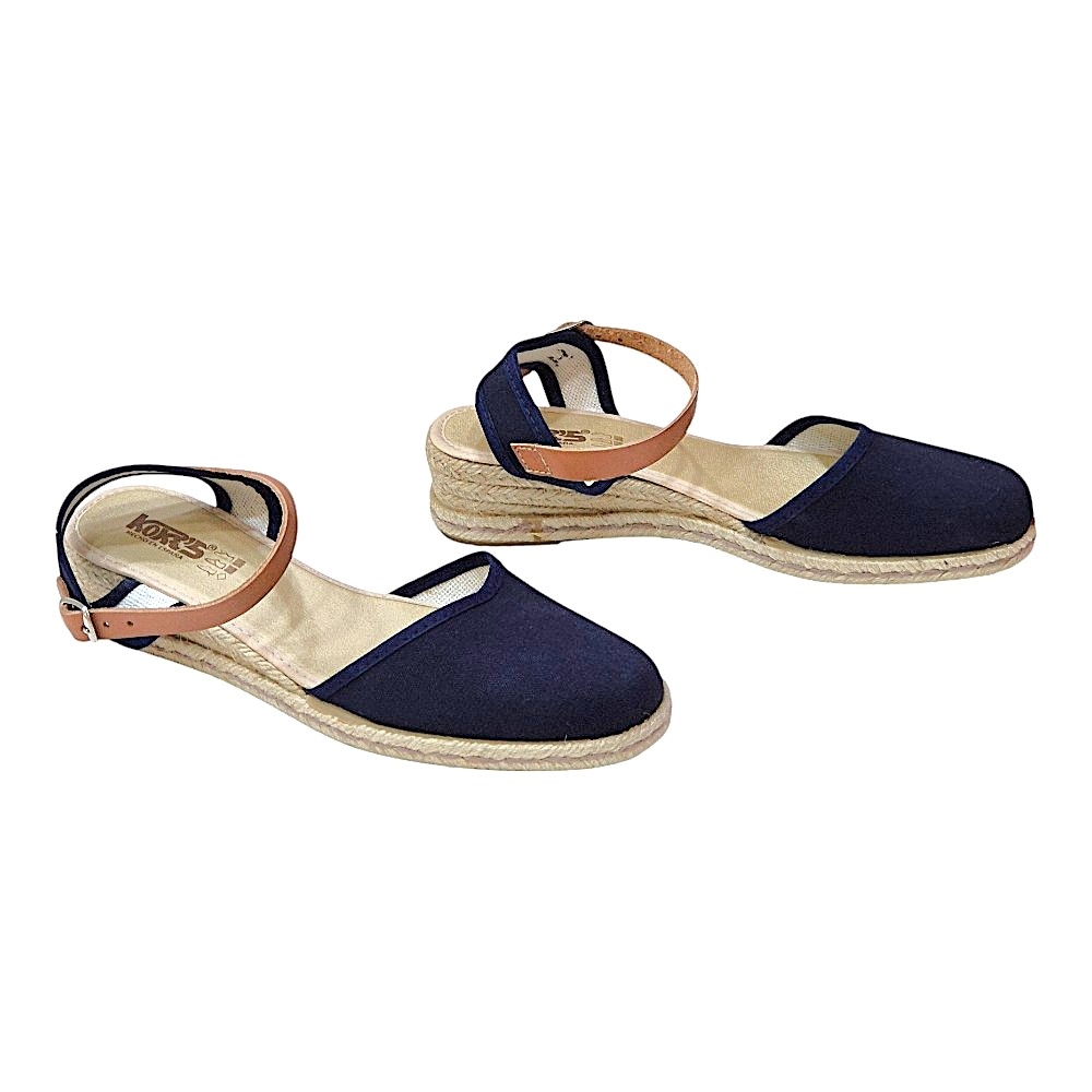 Diseño Clásico y Moderno: El diseño de alpargata tradicional se reinventa con un toque moderno gracias a su color azul marino profundo y la pulsera de piel natural en tono camel.