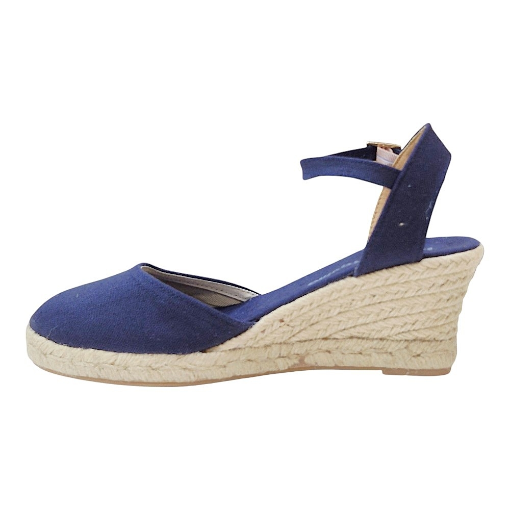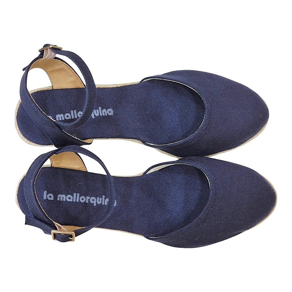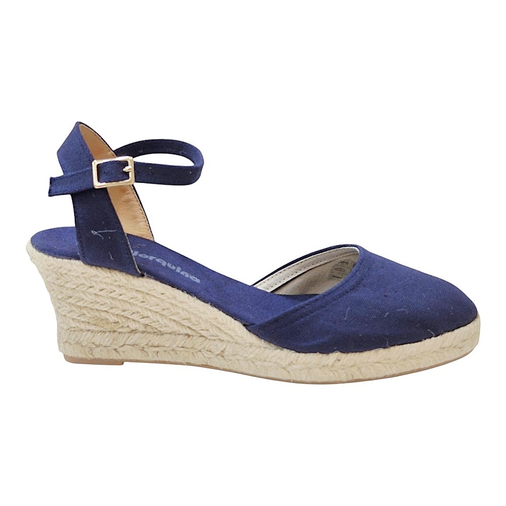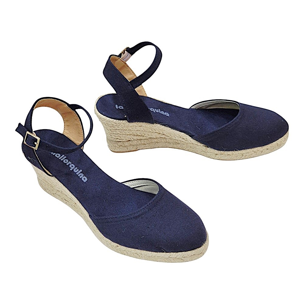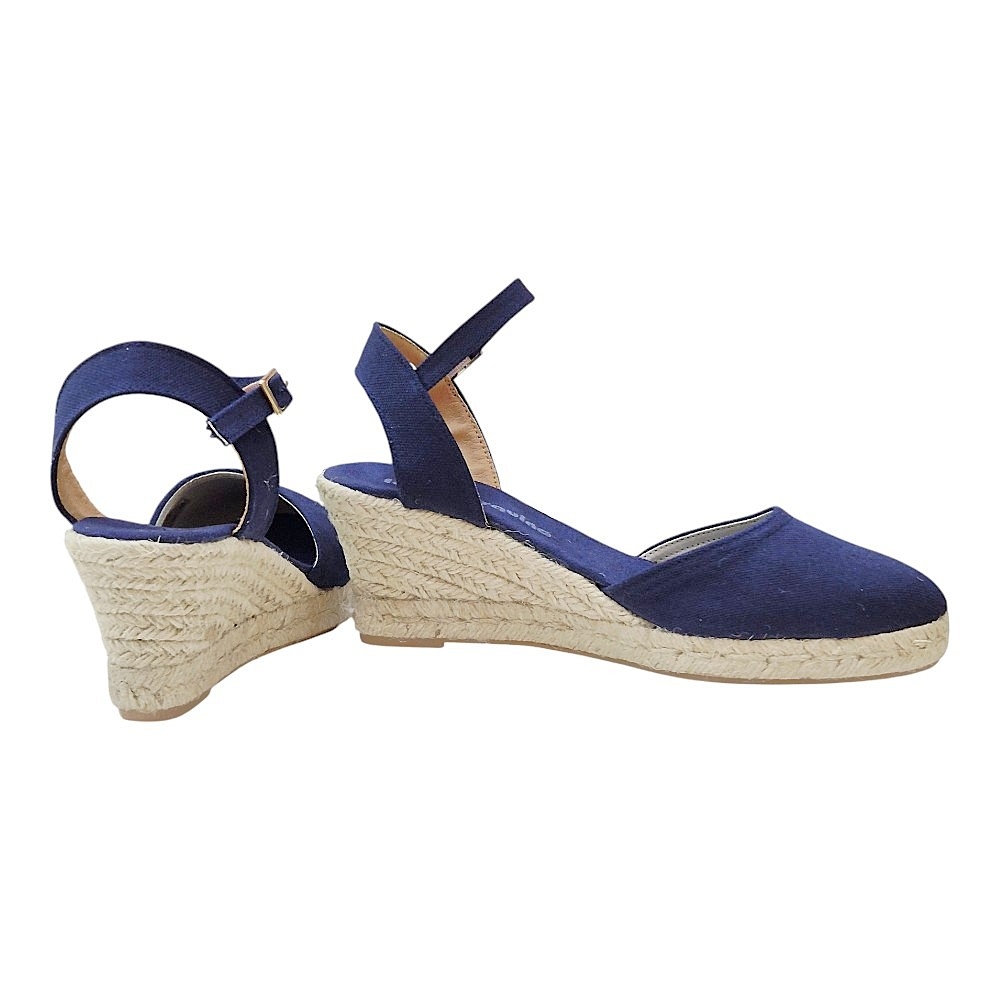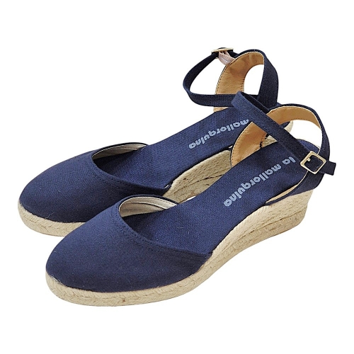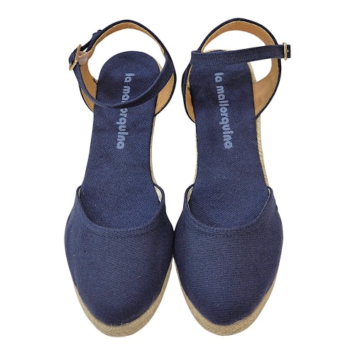 Estas alpargatas de cuña combinan la tradición artesanal con un diseño moderno y versátil, perfectas para complementar tus looks de temporada. El color Marino 25A, un azul profundo y sofisticado, aporta un toque de elegancia a cualquier outfit.