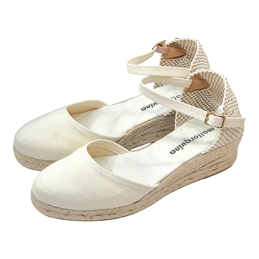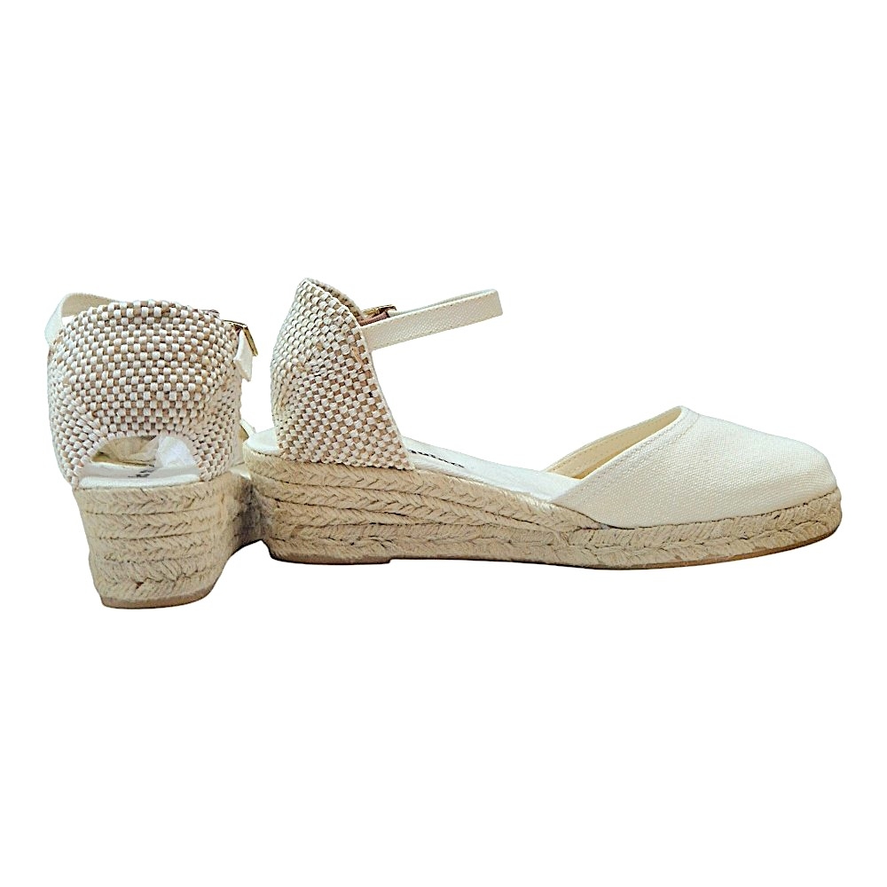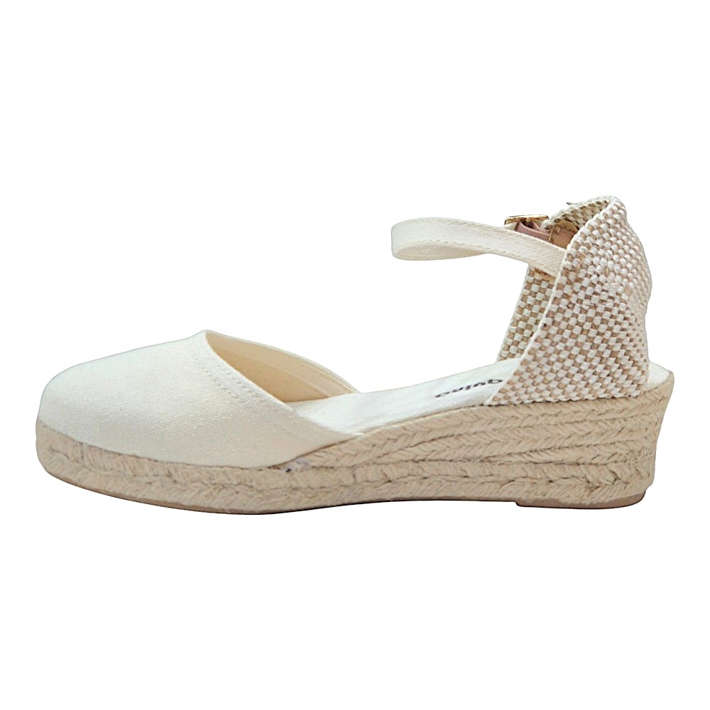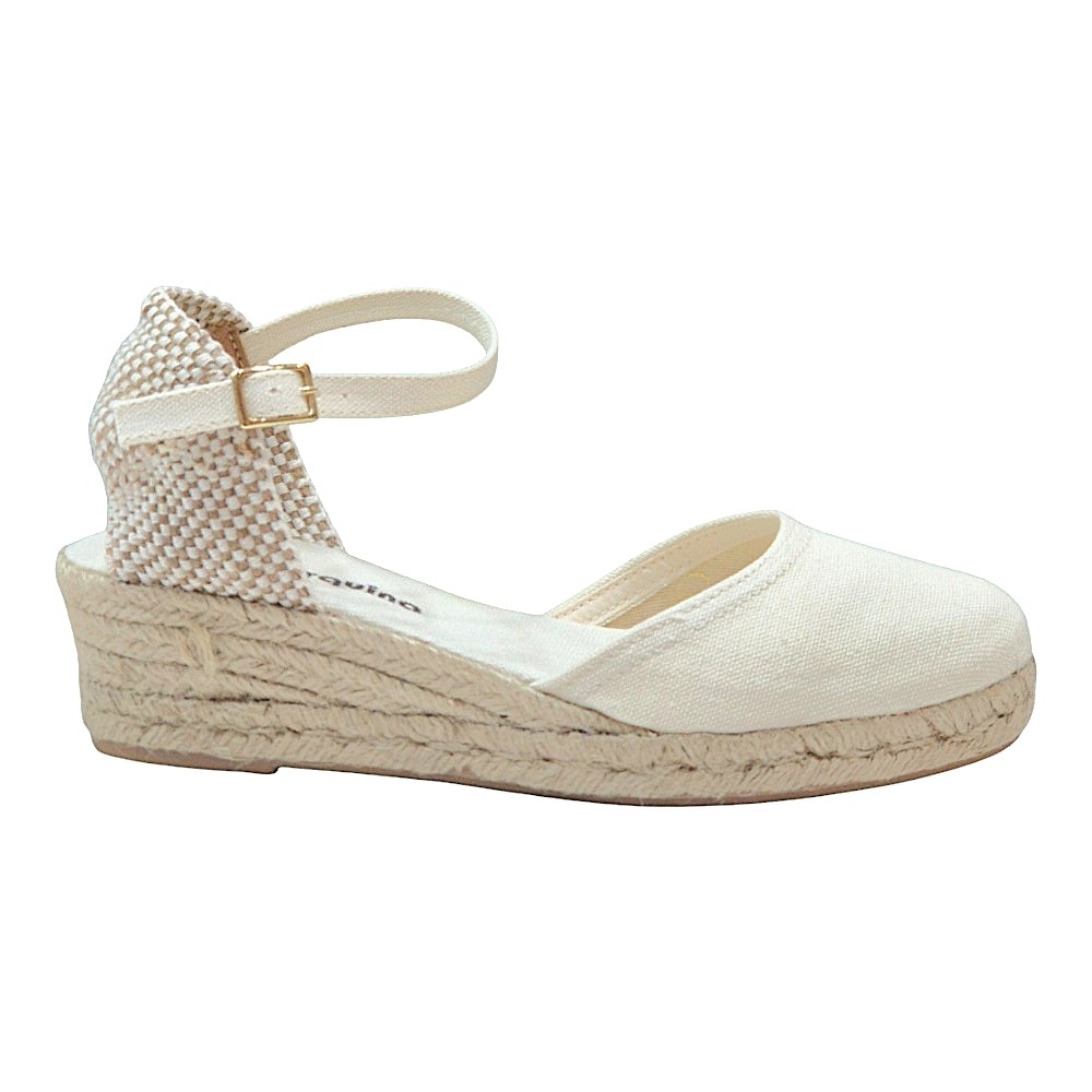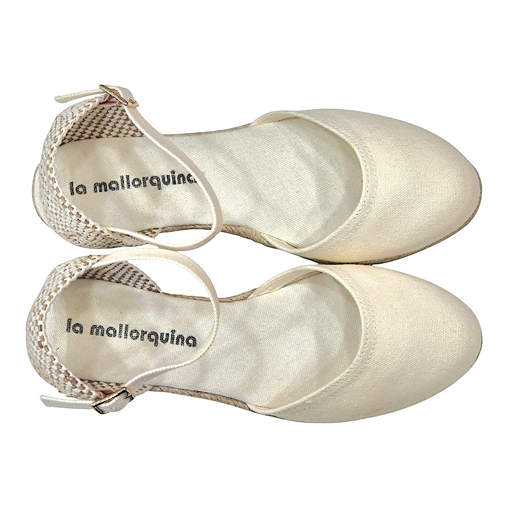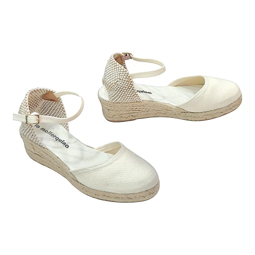 Estas alpargatas para mujer de la marca La Mallorquina, modelo KING-3 CUERDAS NATURAL, se presentan en un elegante color CRUDO (blanco natural o beige claro). Son un calzado de estilo clásico y artesanal, perfecto para la temporada de primavera-verano.