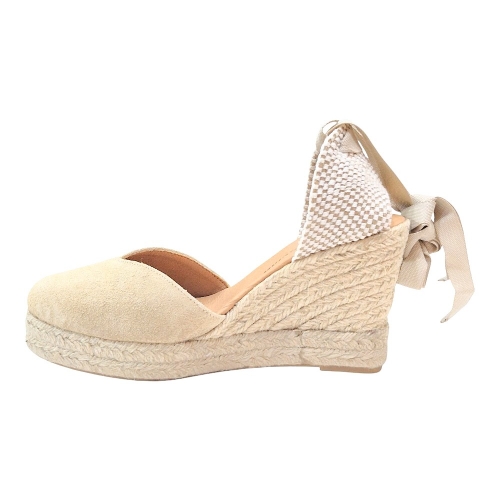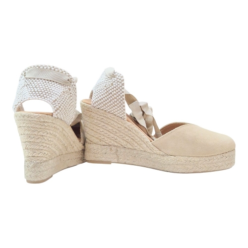 ¡Marca tendencia con las alpargatas de cuña LACESWO-7 de La Mallorquina! Este diseño icónico redefine el calzado veraniego, fusionando la artesanía tradicional con las últimas tendencias. El suave acabado en ante color 6327 aporta un toque de lujo y versatilidad, mientras que su característica doble cuña de cuerda natural te eleva con elegancia y confort.