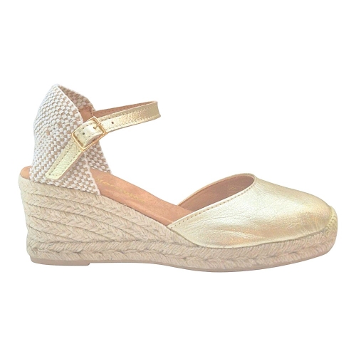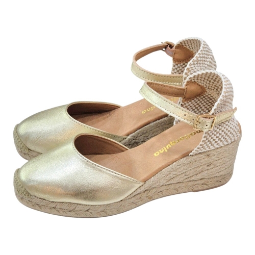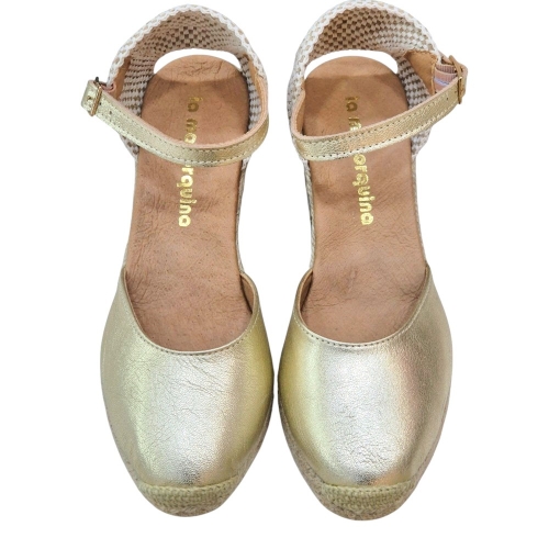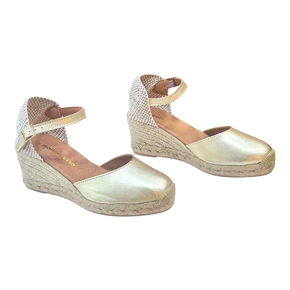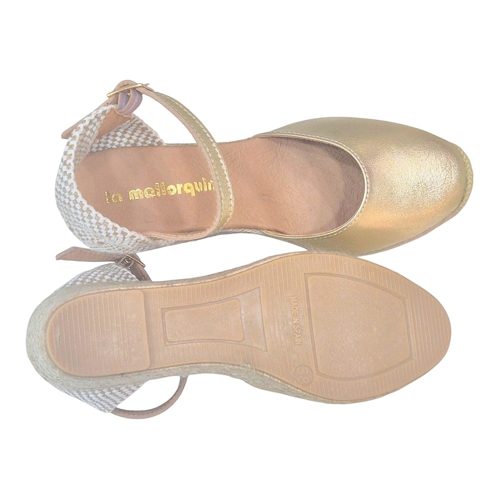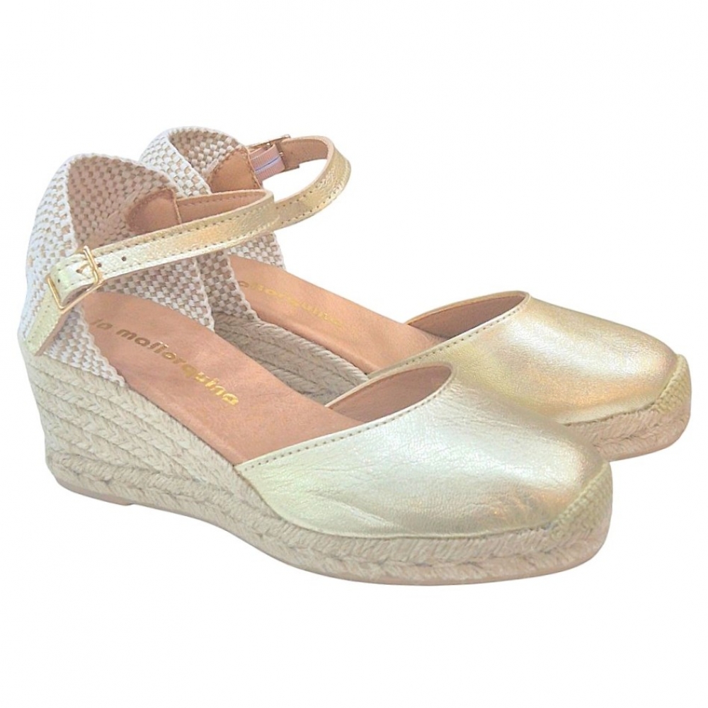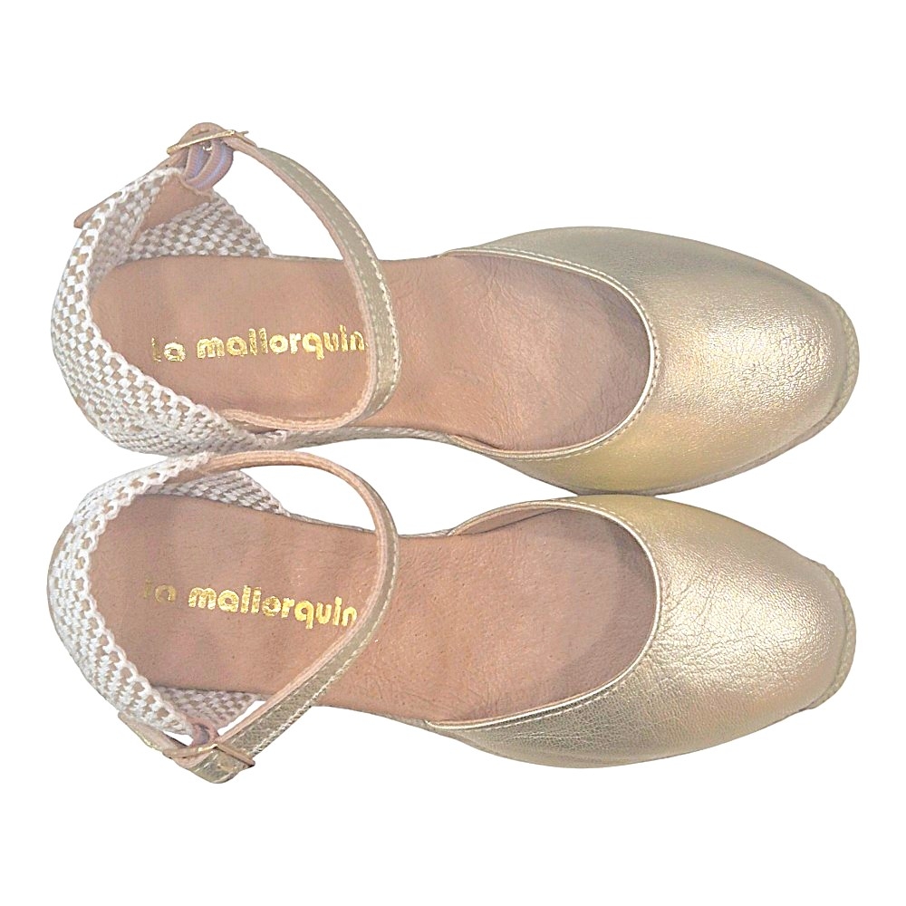 Eleva tus looks de temporada con la sofisticación artesanal de La Mallorquina. El modelo King 116 combina la esencia clásica de las alpargatas españolas con un acabado contemporáneo y lujoso en tono Galaxy Mate Carrara, un dorado suave y elegante que se adapta a cualquier evento, desde una tarde de paseo hasta una celebración especial.