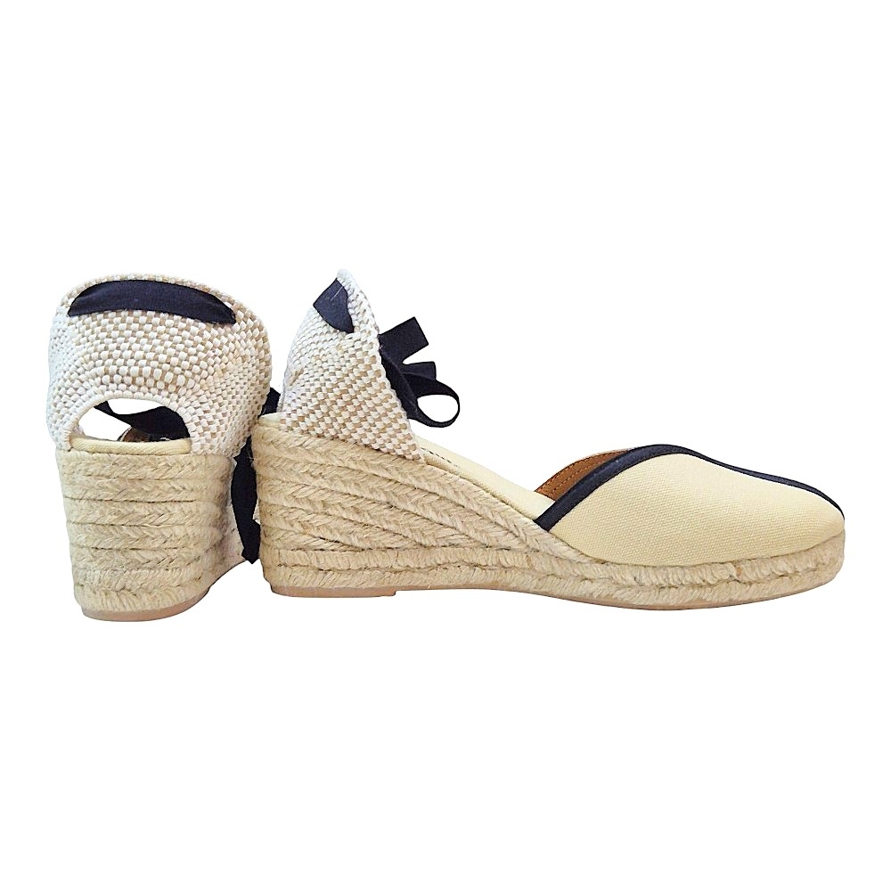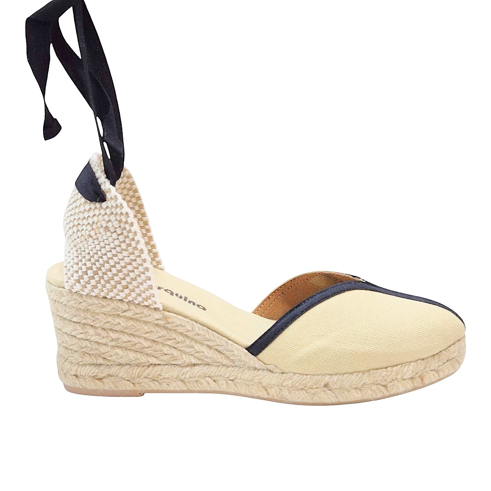 Cuña de Esparto: Elaborada con 5 cuerdas de fibra natural trenzada, ofreciendo la altura perfecta para estilizar la figura manteniendo una pisada estable.
