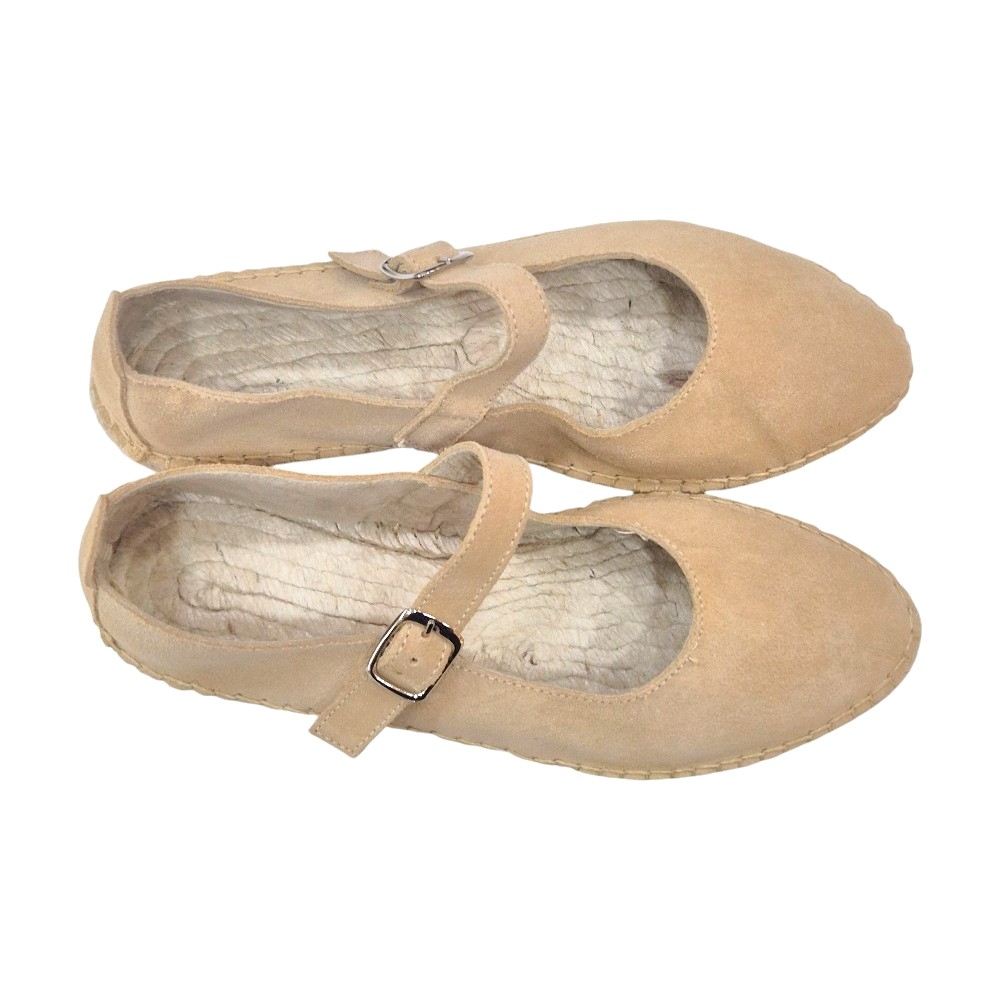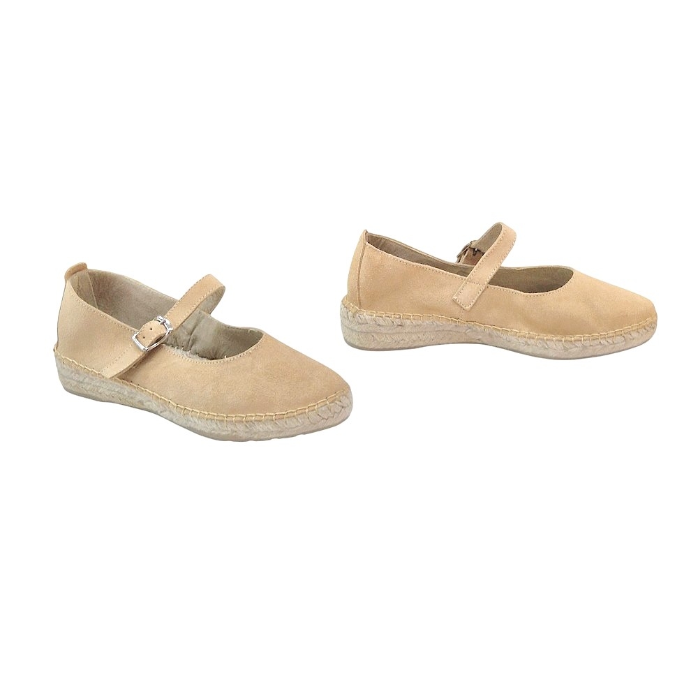 Este modelo reinventa la clásica alpargata transformándola en una elegante Mary Jane (Mercedita). Su acabado en serraje de alta calidad en tono miel aporta una calidez versátil, ideal para combinar con vestidos de lino, vaqueros o looks de oficina relajados. El cierre de correa con hebilla metálica no solo añade un toque chic, sino que garantiza un ajuste seguro al empeine.
