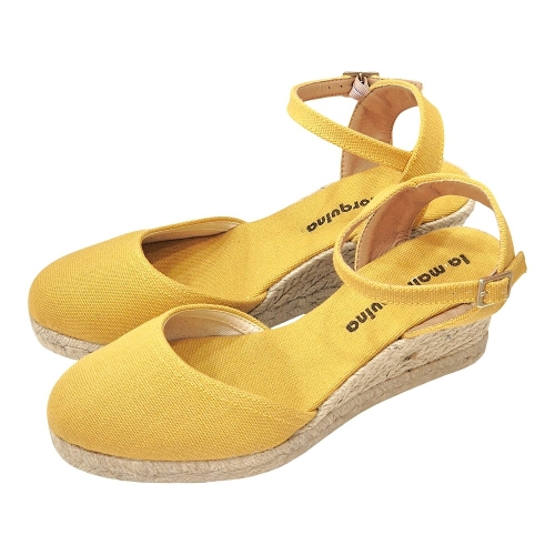 Confeccionadas con una pala de suave lona en un llamativo color mostaza (referencia 65A), estas alpargatas irradian alegría y vitalidad. Su diseño de tira al tobillo ajustable con hebilla garantiza un ajuste seguro y personalizado, proporcionando comodidad durante todo el día.