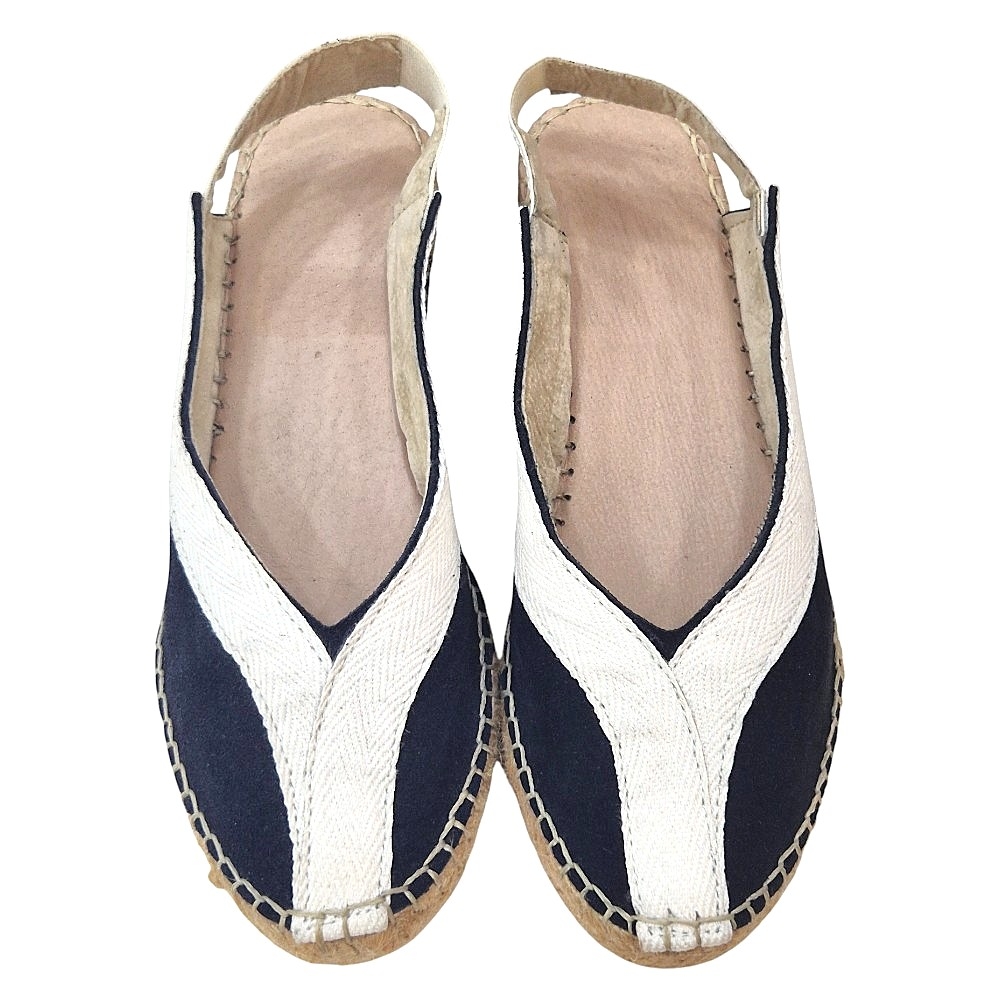 El diseño de punta cerrada y talón descubierto con tira elástica asegura un ajuste cómodo y seguro, adaptándose a la forma de tu pie para un confort duradero. La suela, característica de las alpargatas tradicionales, está elaborada con yute trenzado, ofreciendo una ligereza y flexibilidad excepcionales, además de una pis