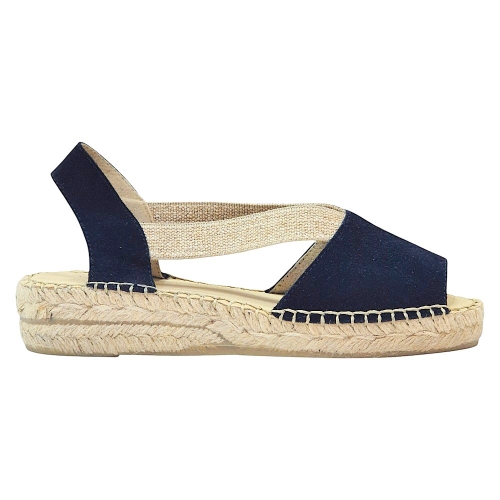 Su parte superior presenta una puntera peep-toe y una tira en el talón para un ajuste seguro. La suela está elaborada con la clásica y duradera esparto trenzado, característica de las alpargatas, ofreciendo un toque natural y veraniego. El contraste del negro serraje con el tono natural del esparto crea una estética versátil que se adapta a diversas ocasiones.