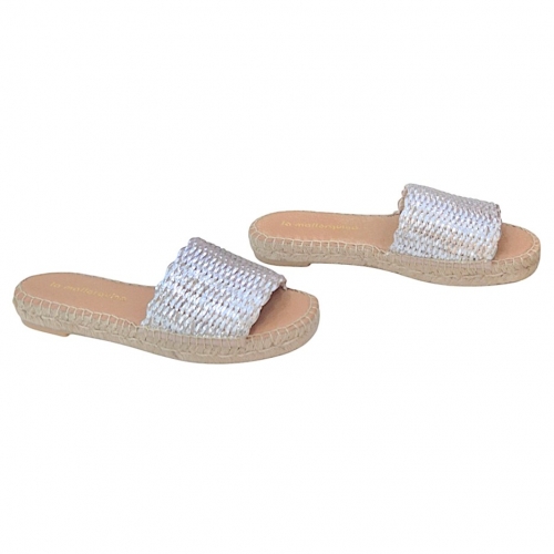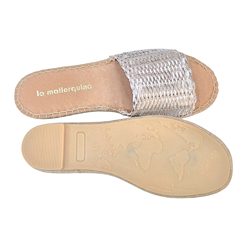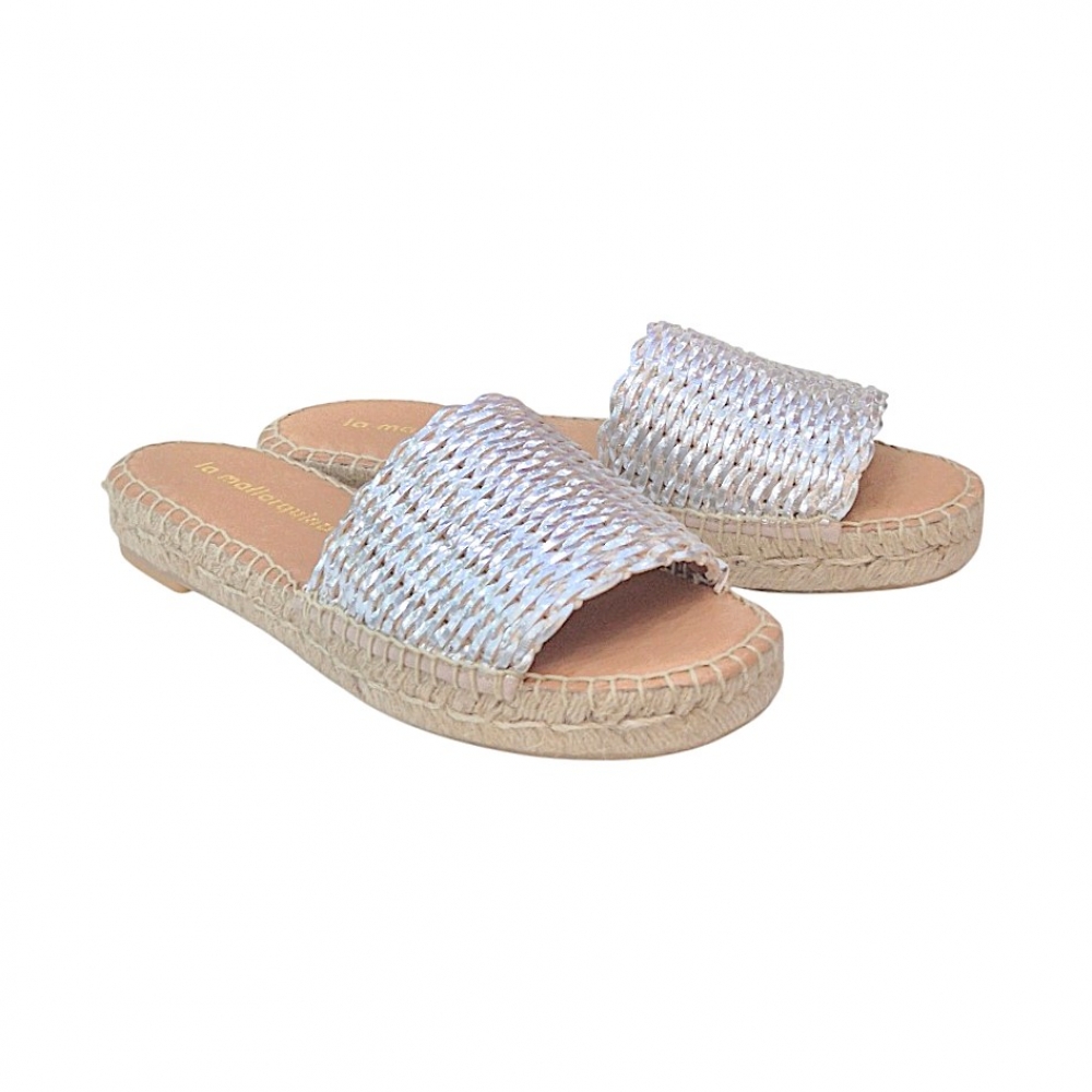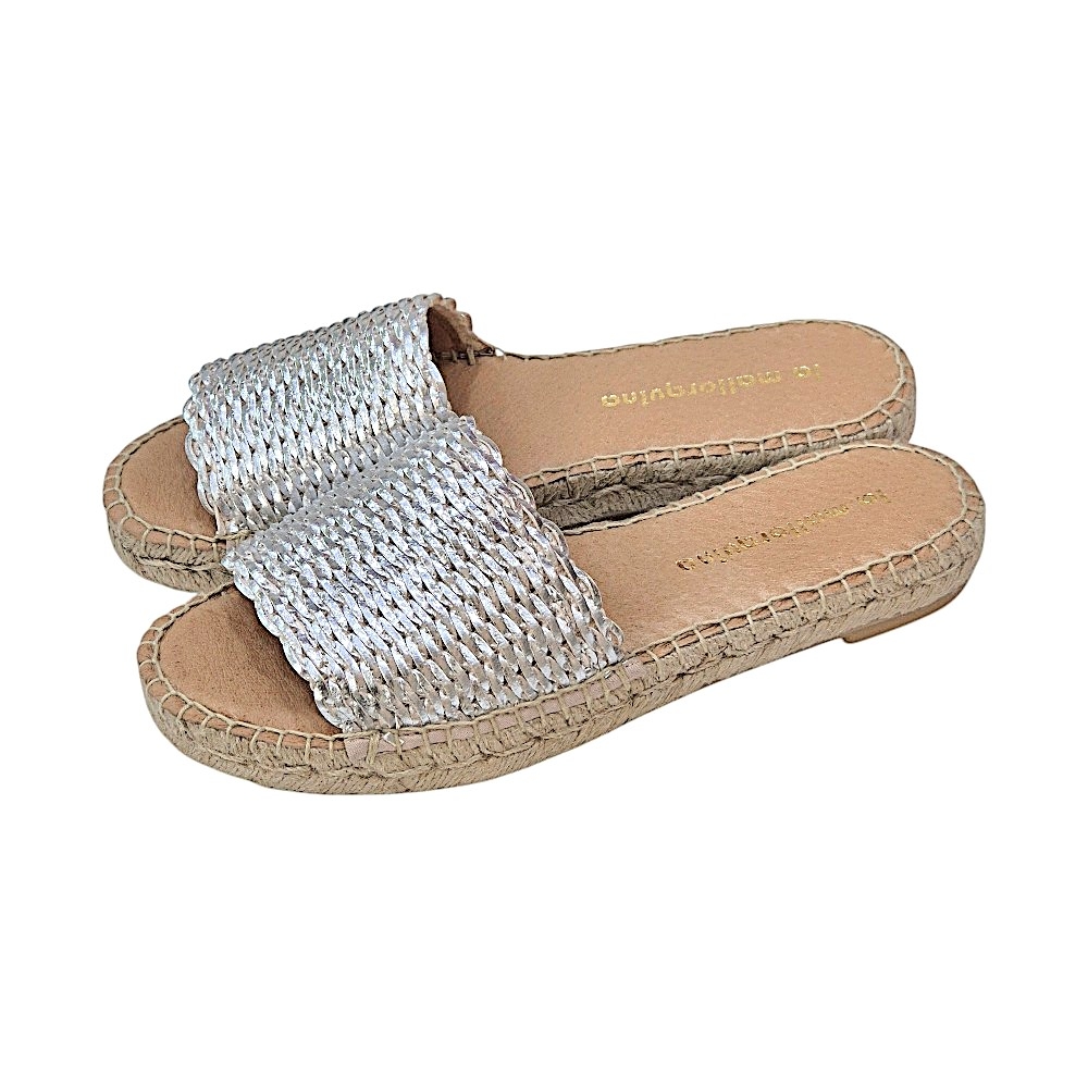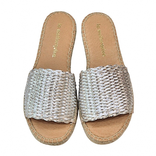 El modelo destaca por su pala de trenzado artesanal en color Latto Plata, un tono metalizado sutil que captura la luz del sol y añade un toque de lujo a cualquier conjunto informal. La estructura se asienta sobre una base de yute natural de alta calidad, cosida con la maestría que caracteriza al calzado "Made in Spain".