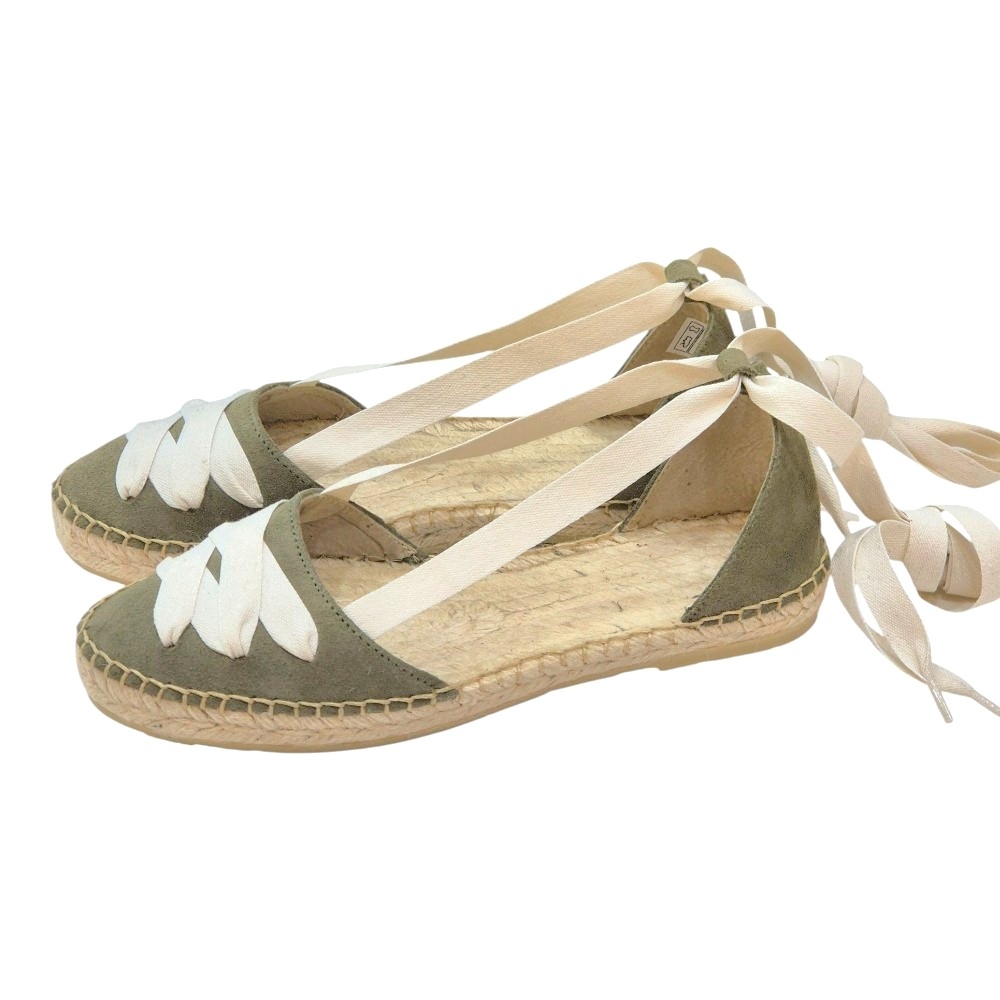 Eleva tu estilo mediterráneo con el modelo M.70 de Pasfor, una alpargata que fusiona la tradición artesana con un diseño contemporáneo y femenino. Su exquisito acabado en serraje kaki claro y el contraste de sus cintas beige las convierten en el accesorio versátil indispensable para los días de sol.