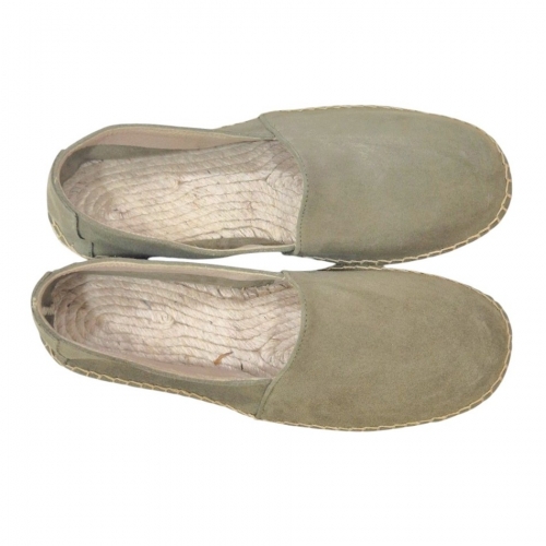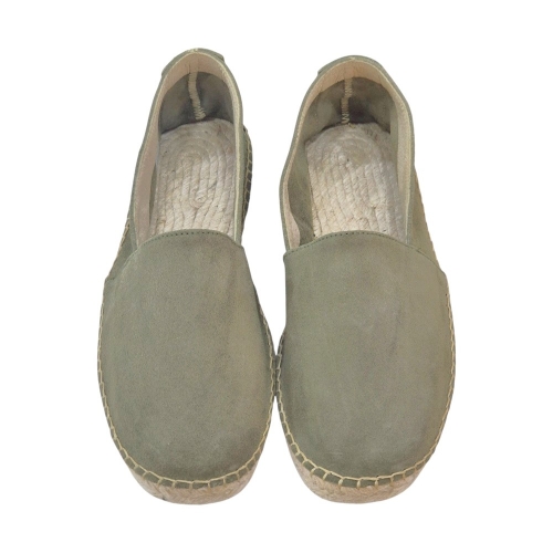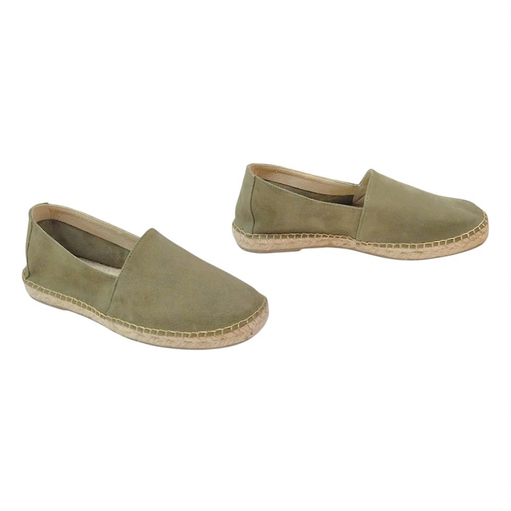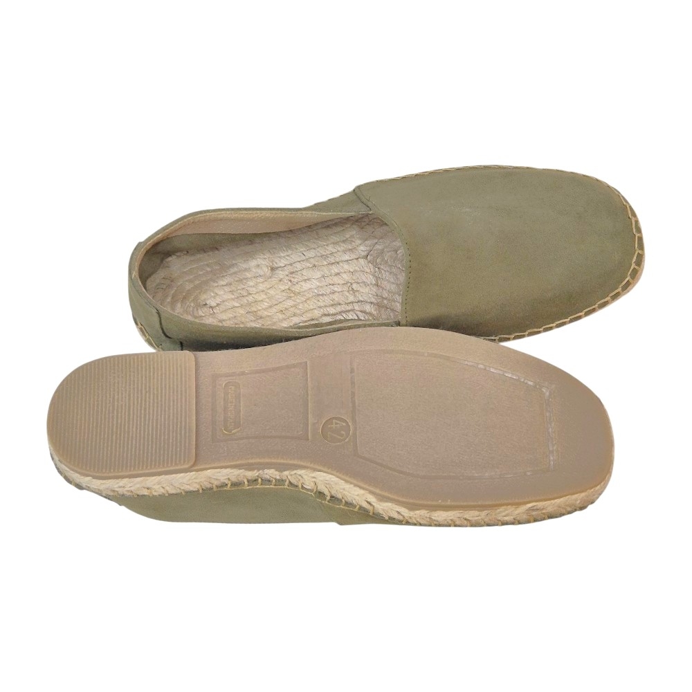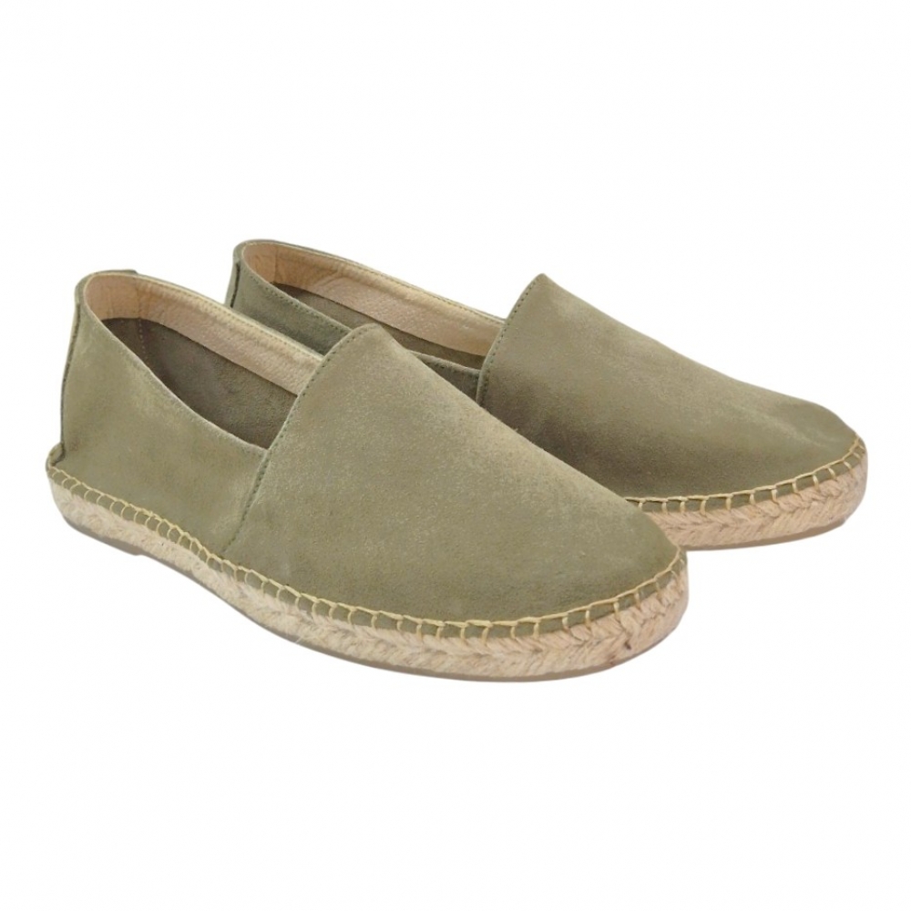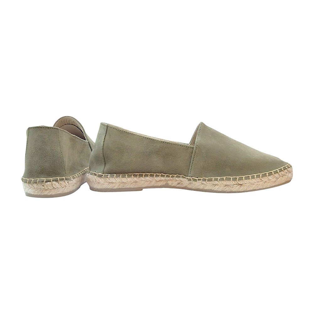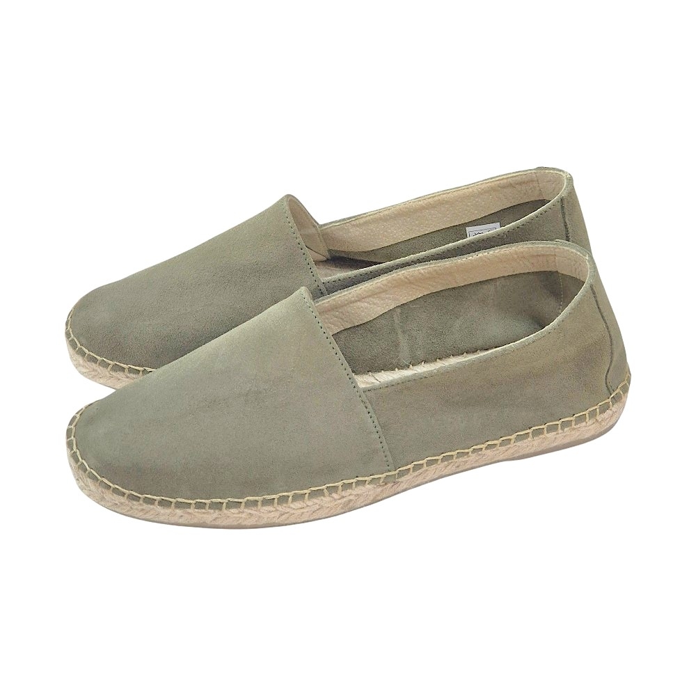 Estas alpargatas están confeccionadas en serraje de alta calidad en un elegante tono kaki claro, un color versátil que combina fácilmente con pantalones chinos, bermudas o vaqueros. Su acabado aterciopelado aporta una textura suave al tacto y una estética refinada.