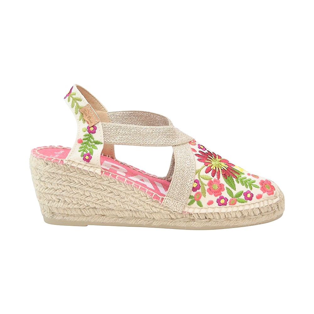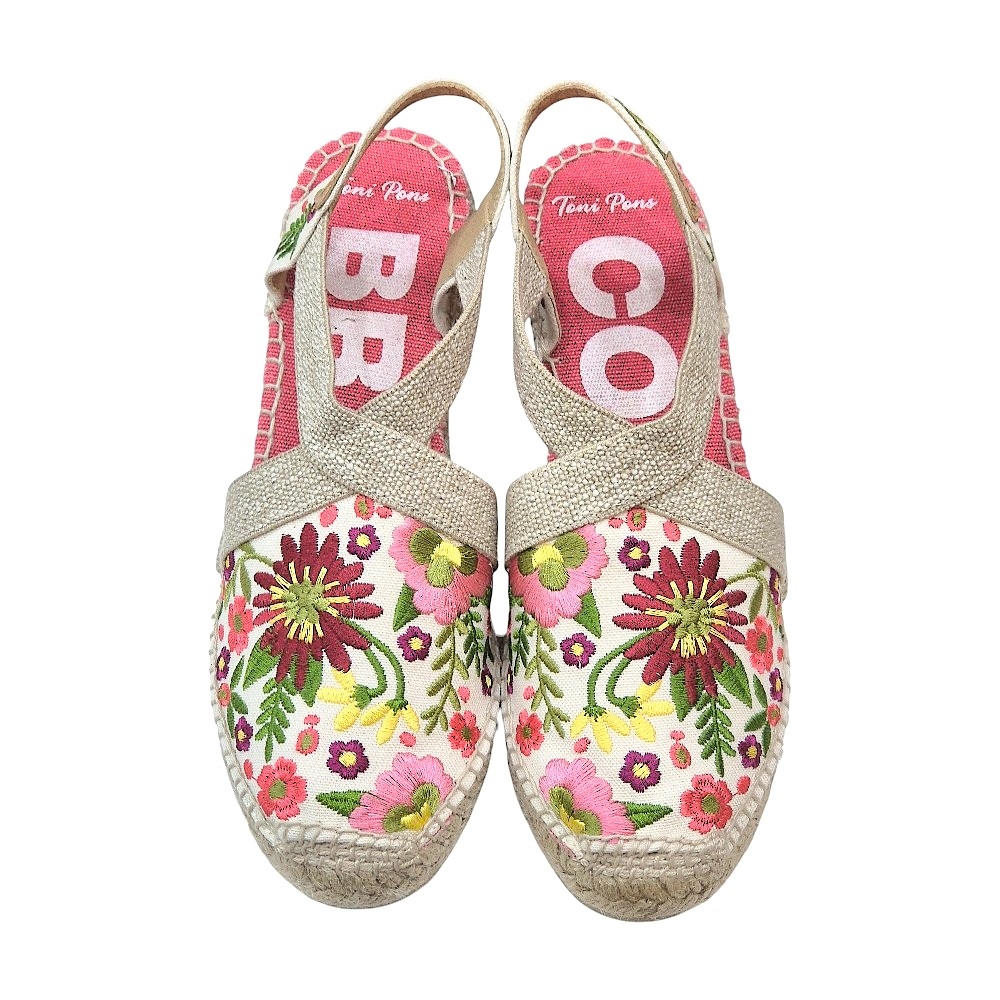 Lleva la alegría del verano en cada paso con el modelo Montjoi de Toni Pons. Estas alpargatas tipo sandalia no son solo un calzado, sino una pieza de artesanía que combina la tradición del yute con un diseño floral vibrante y contemporáneo. Su acabado en color Peonía aporta una frescura femenina ideal para cualquier evento bajo el sol.