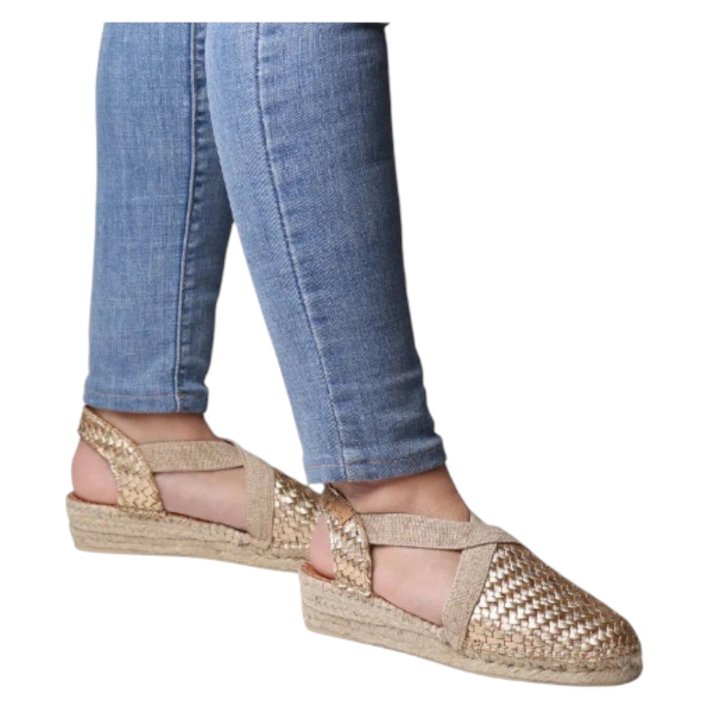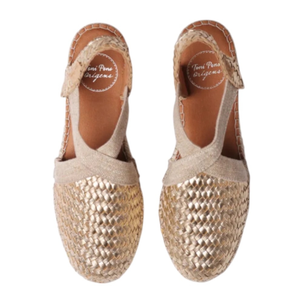 Eleva tus looks de verano con el modelo SIRACUSA de Toni Pons, una alpargata que fusiona la sofisticación de la piel metalizada con la esencia del yute natural. Su acabado en color Plati (Platino) aporta un brillo sutil y versátil, convirtiéndola en el accesorio perfecto tanto para eventos especiales como para el día a día.