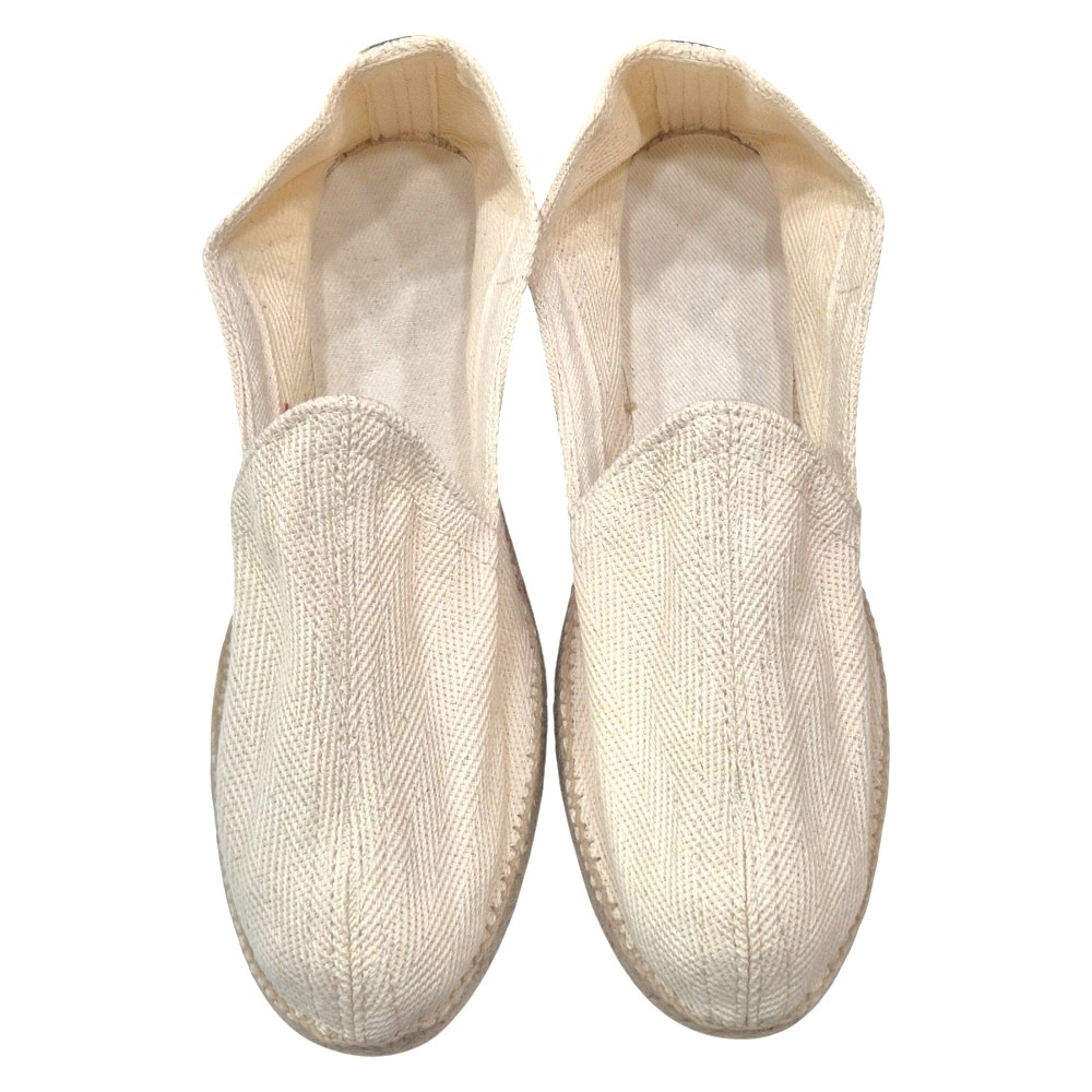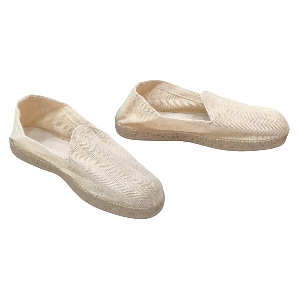 Fabricadas con un tejido de alta calidad en un hermoso color "Crudo" (blanco roto), estas alpargatas destacan por su distintivo patrón de espiga. Este entramado no solo añade un interés visual y una textura rica, sino que también garantiza la durabilidad y la resistencia del calzado. El color natural es versátil y fácil de combinar, haciéndolas un básico imprescindible en cualquier armario.