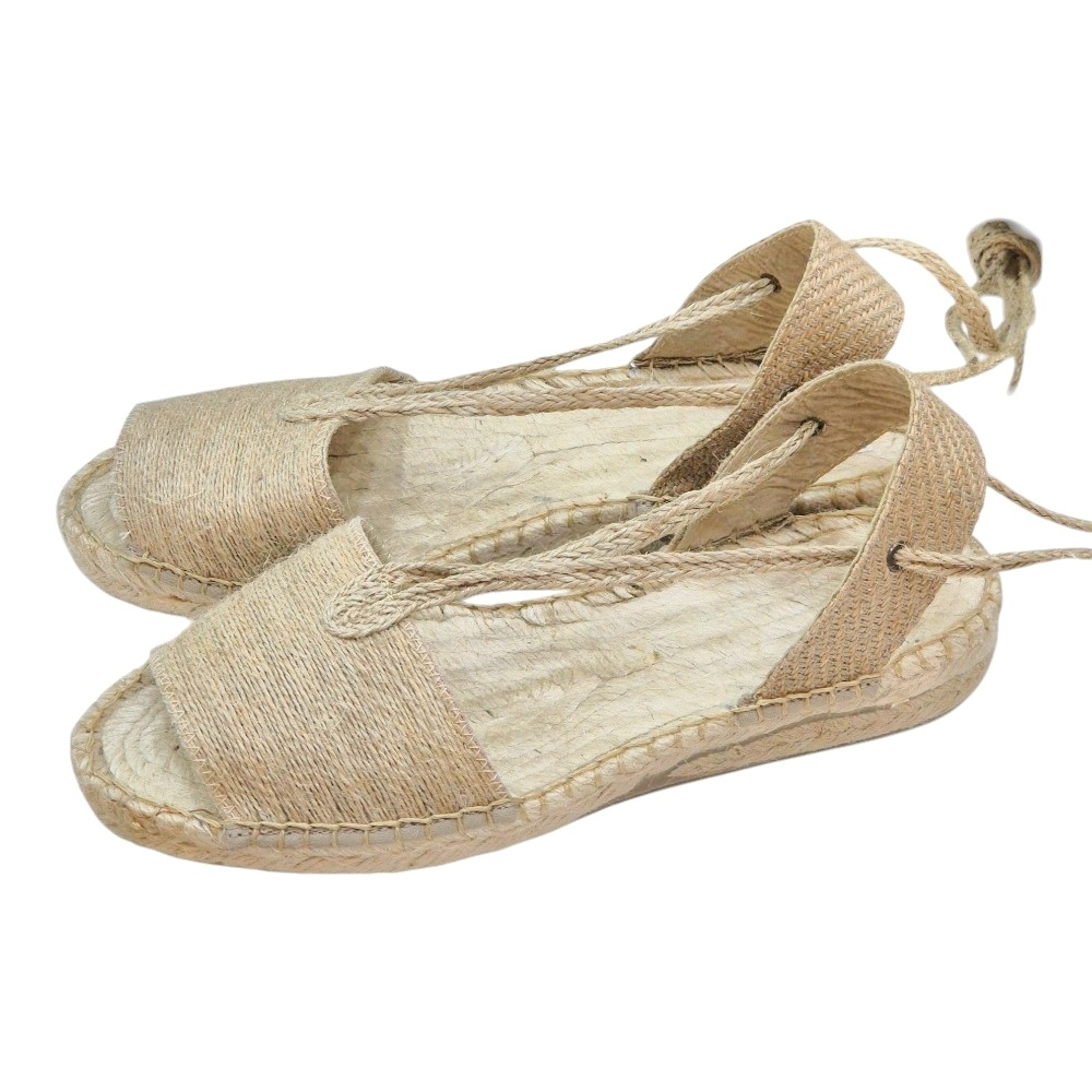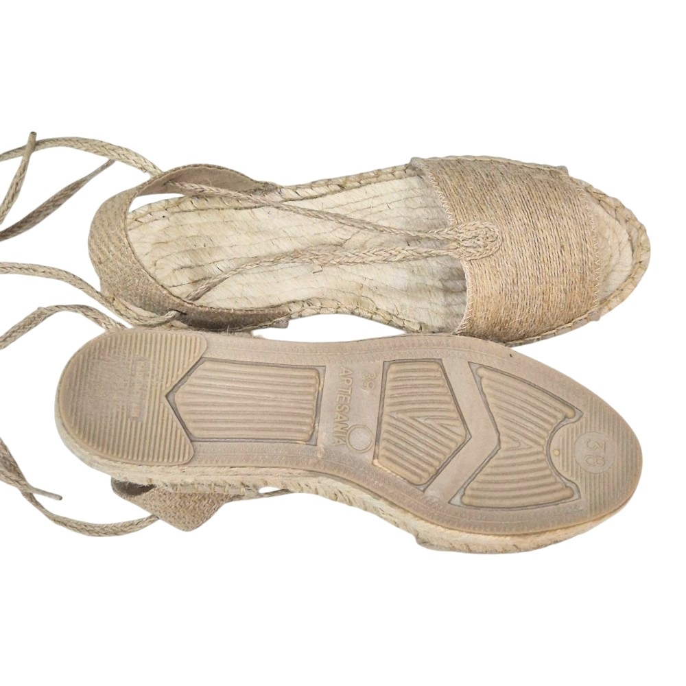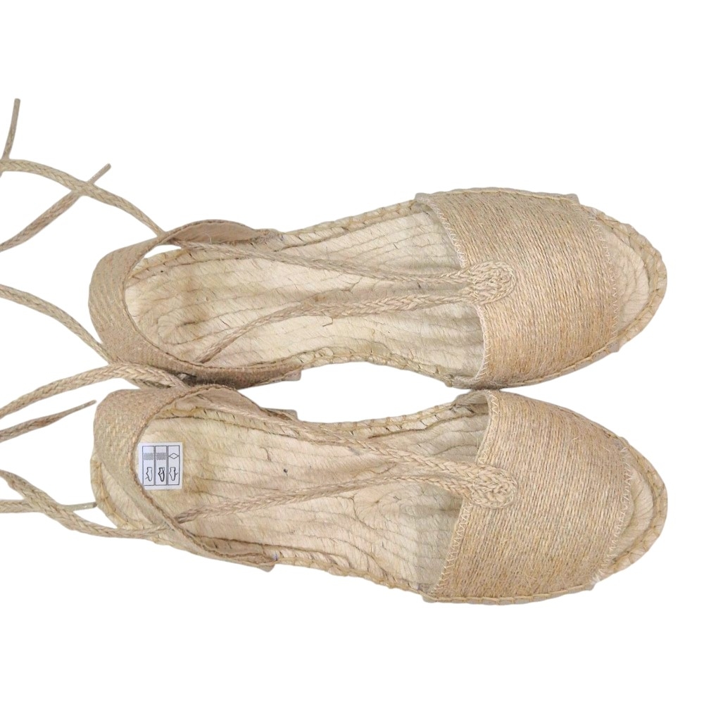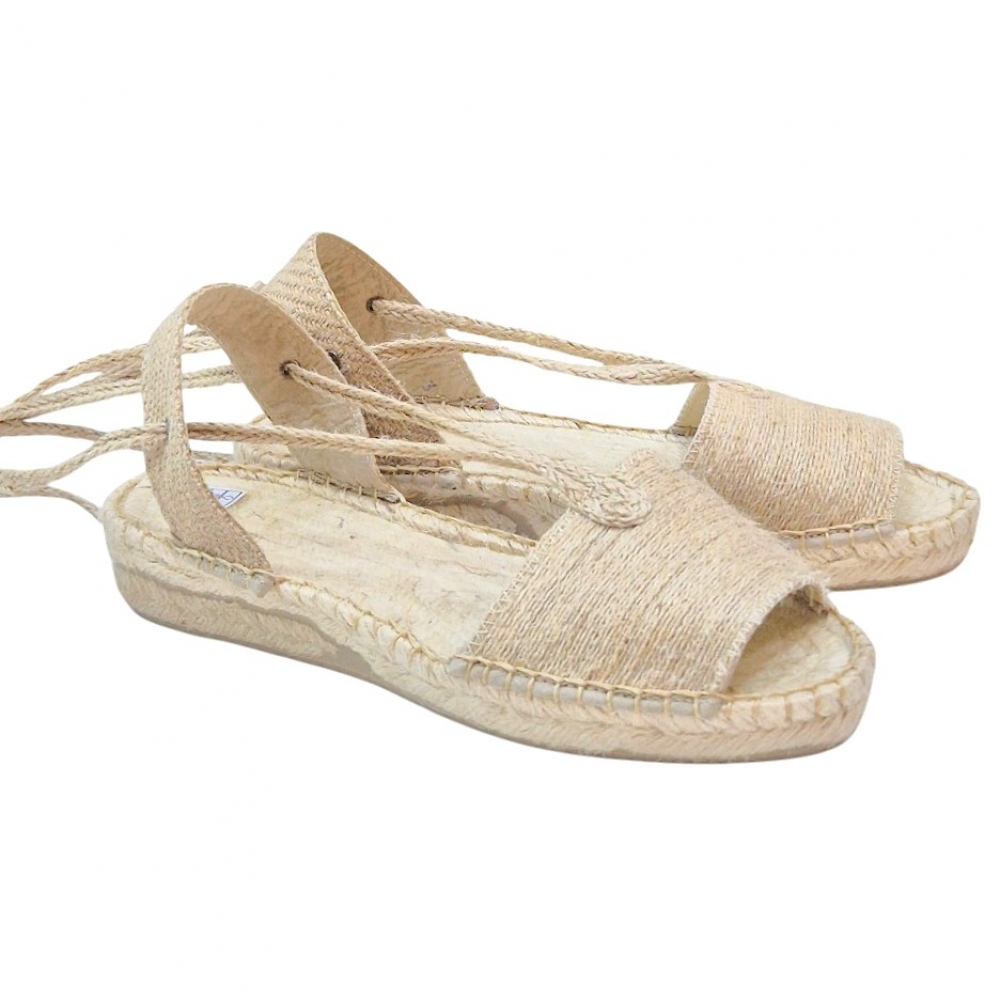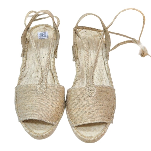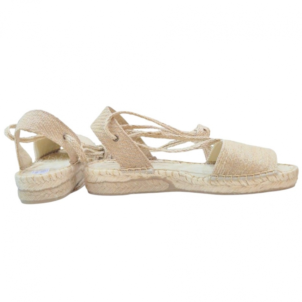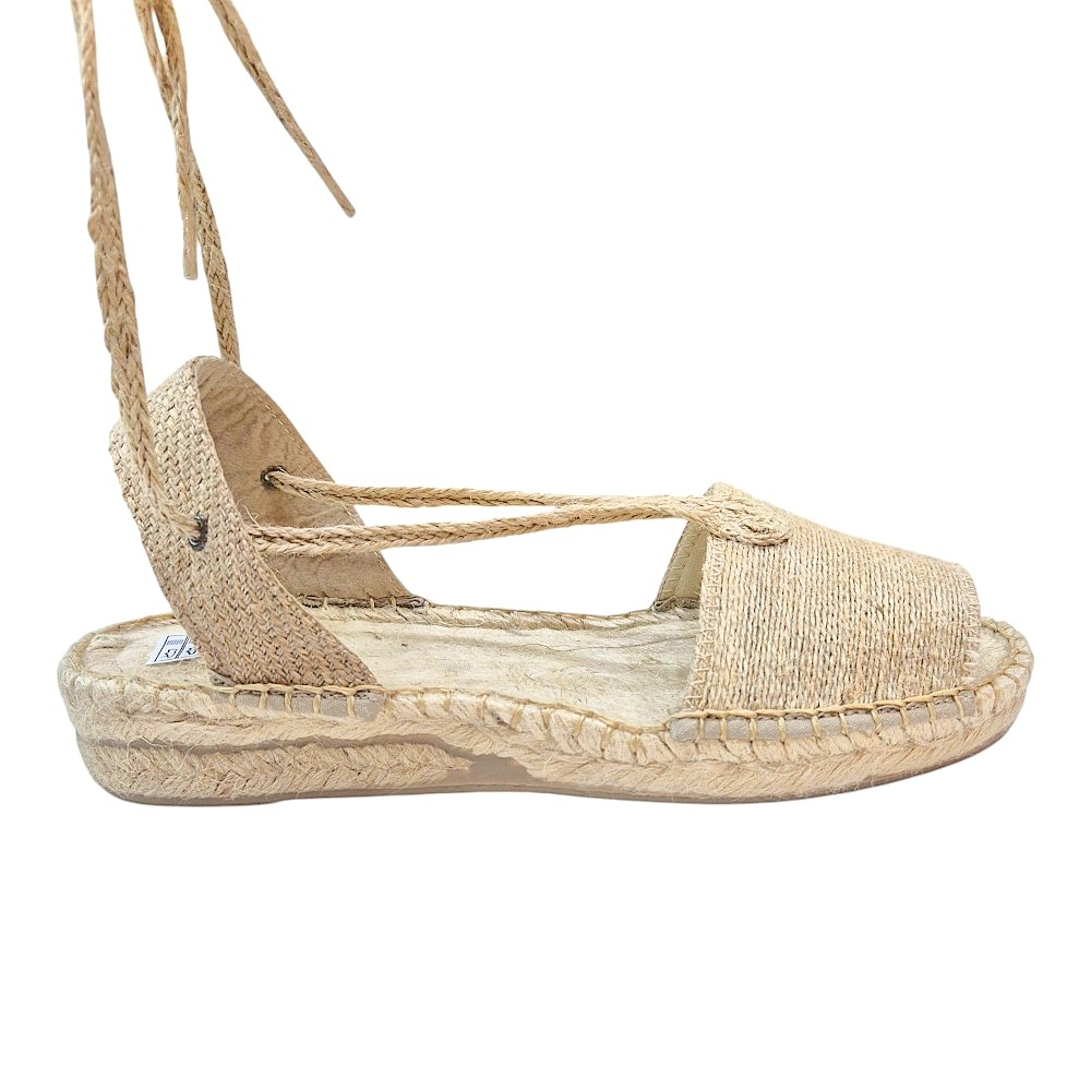 Diseño de Cintas: Su sistema de cierre mediante cordones de yute trenzado permite un ajuste personalizado al tobillo o a lo largo de la pierna, aportando un toque romántico y bohemio (estilo lace-up).