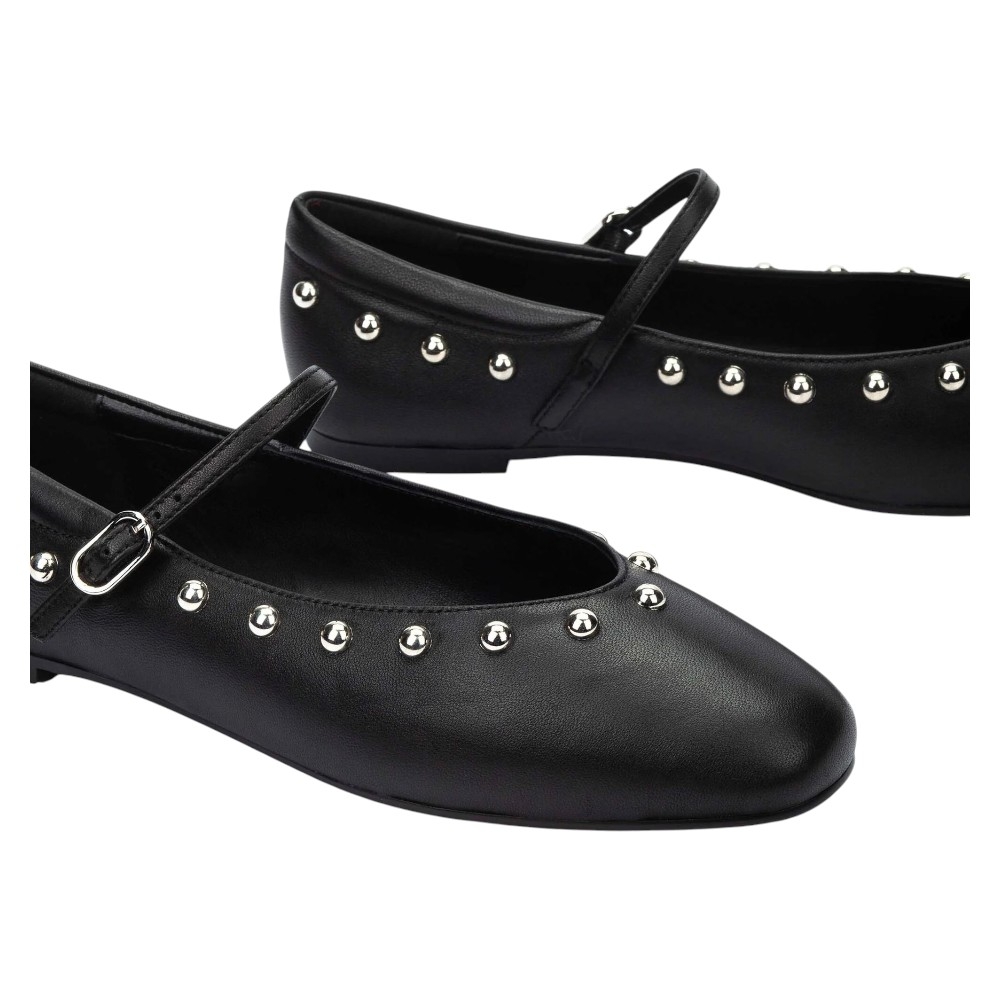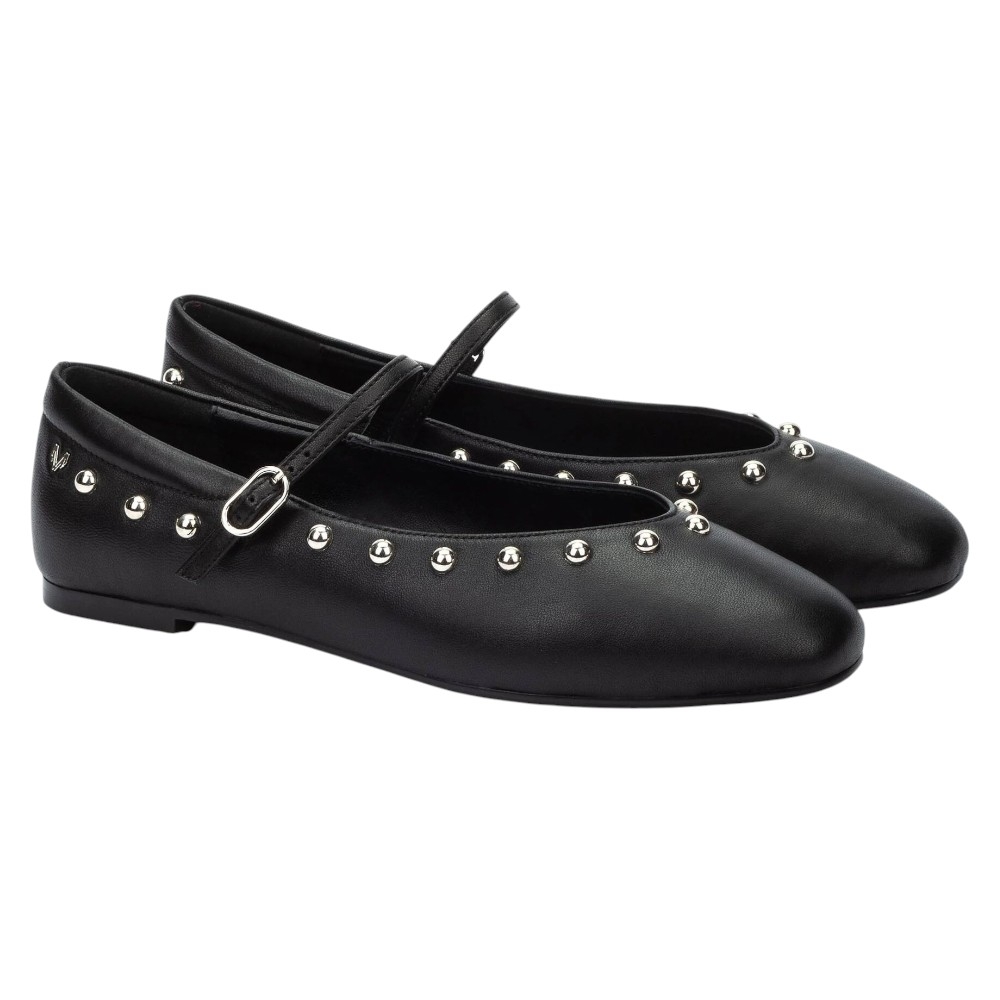 Estas bailarinas de punta almendrada son una apuesta segura para un look elegante y actual. Confeccionadas en piel de cabra de alta calidad, las Lariana destacan por su detalle de tachas metálicas que recorren todo el contorno, aportando un aire distintivo y sofisticado. Su cierre de hebilla en el empeine no solo añade un toque clásico de bailarina, sino que también garantiza un ajuste seguro y cómodo.