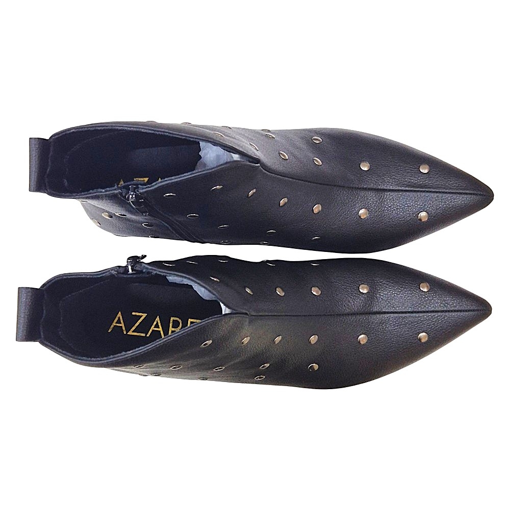 Estos botines negros de Azarey están diseñados para añadir un toque rebelde pero refinado a cualquier conjunto. El modelo, 608K127, está confeccionado en un material sintético de alta calidad con un acabado en negro clásico. El sutil brillo del material, combinado con una elegante punta, crea una silueta sofisticada y moderna.