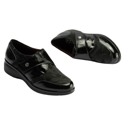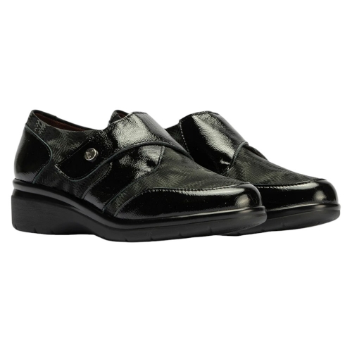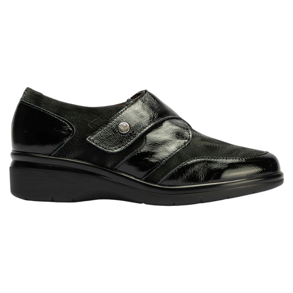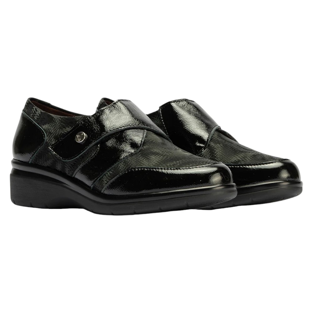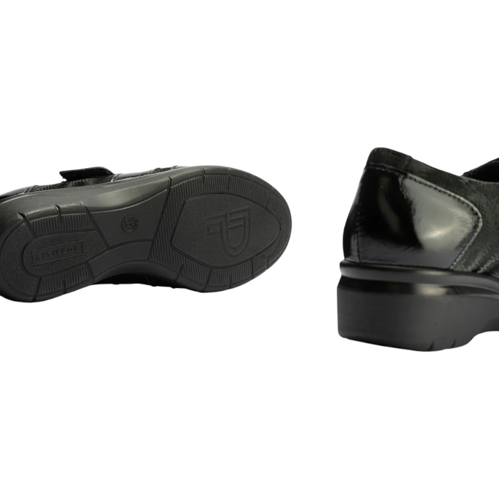 Diseño: Elegante Blucher con detalles en Piel Charol brillante y paneles de lycra con un sutil estampado para un ajuste flexible y adaptativo.