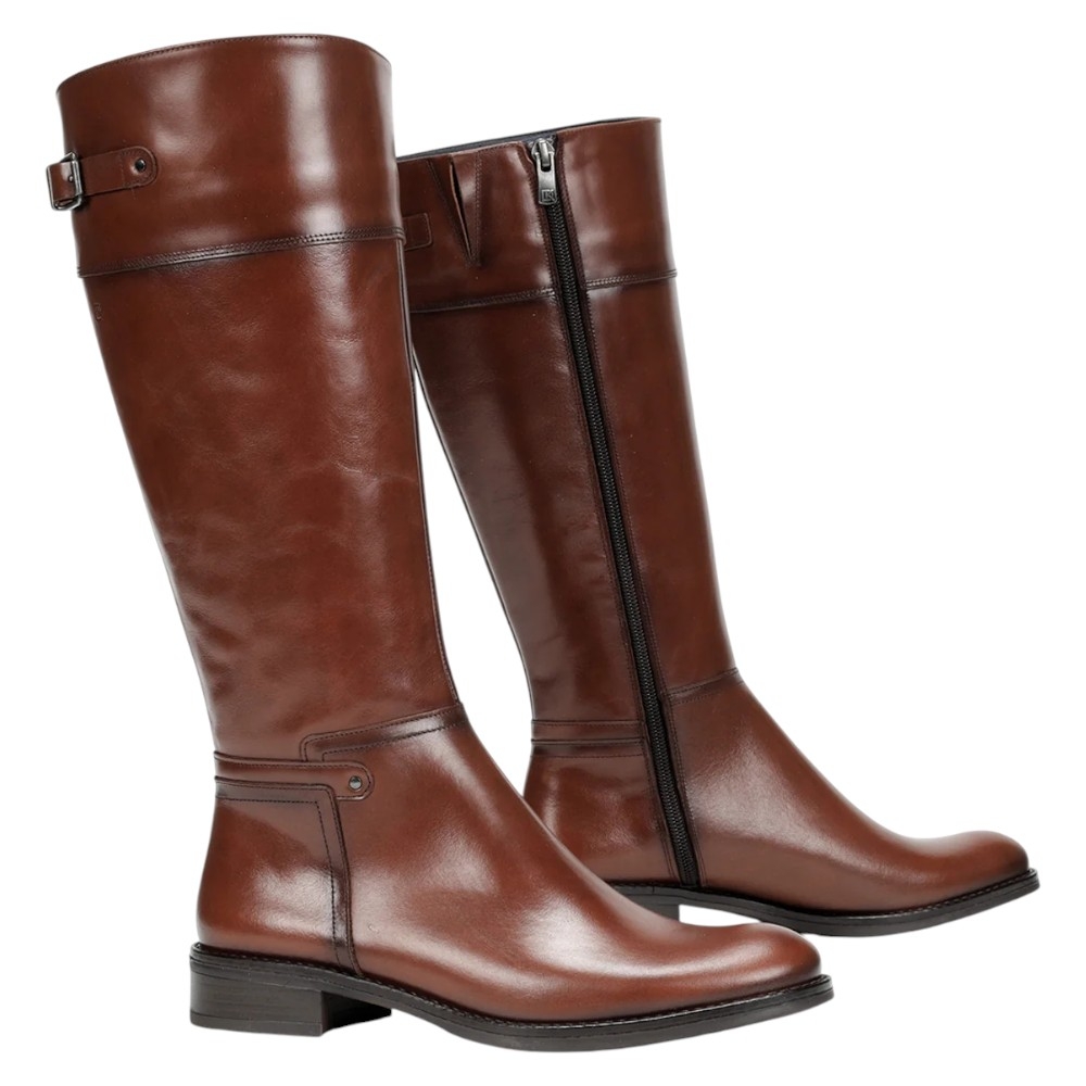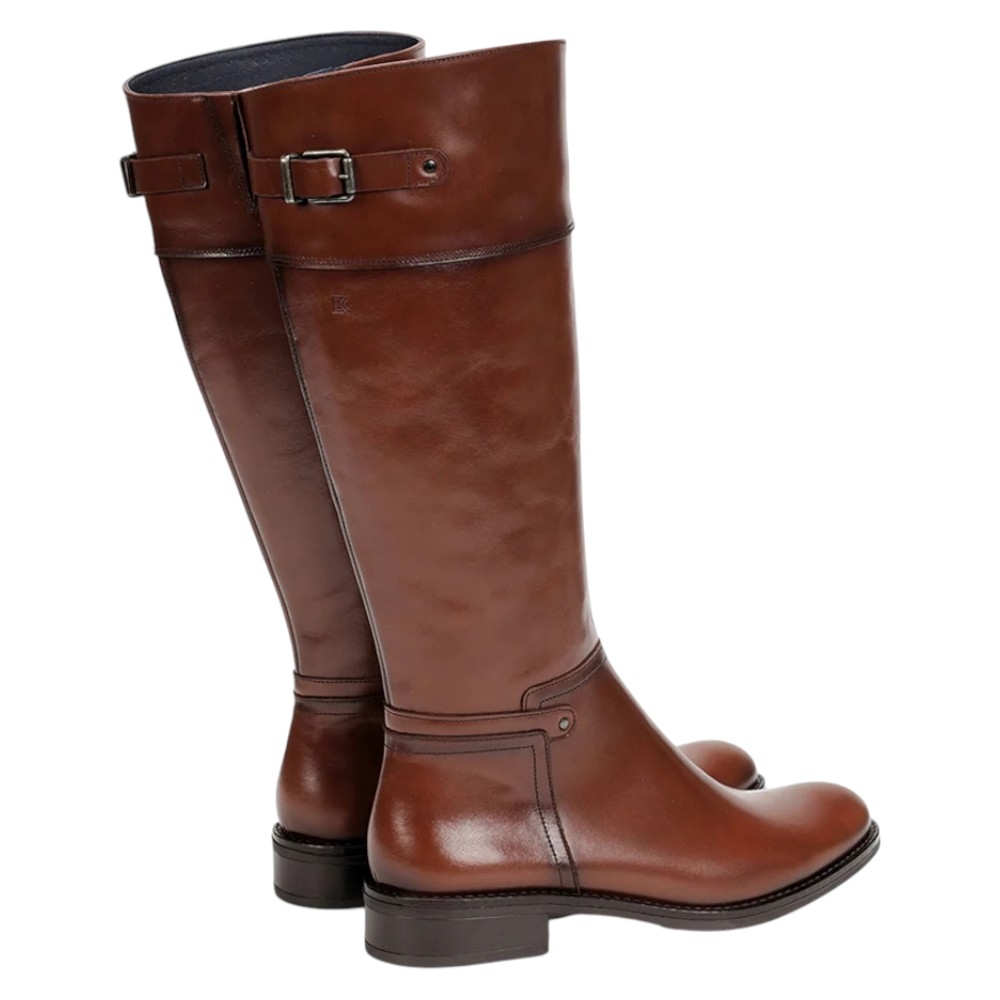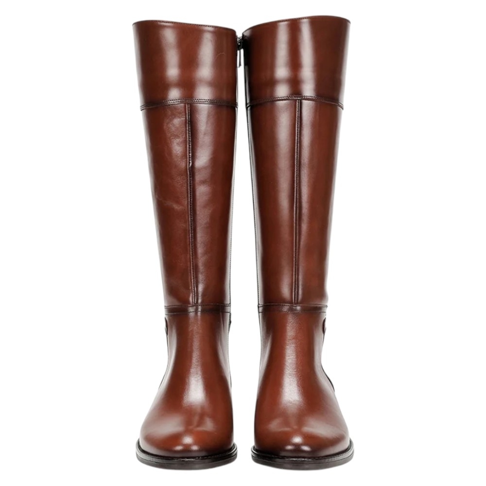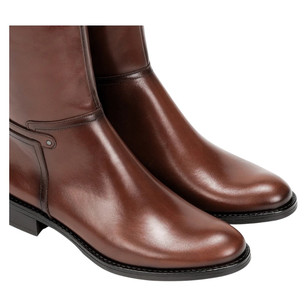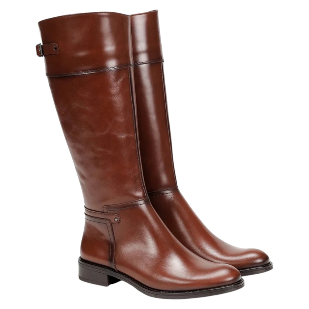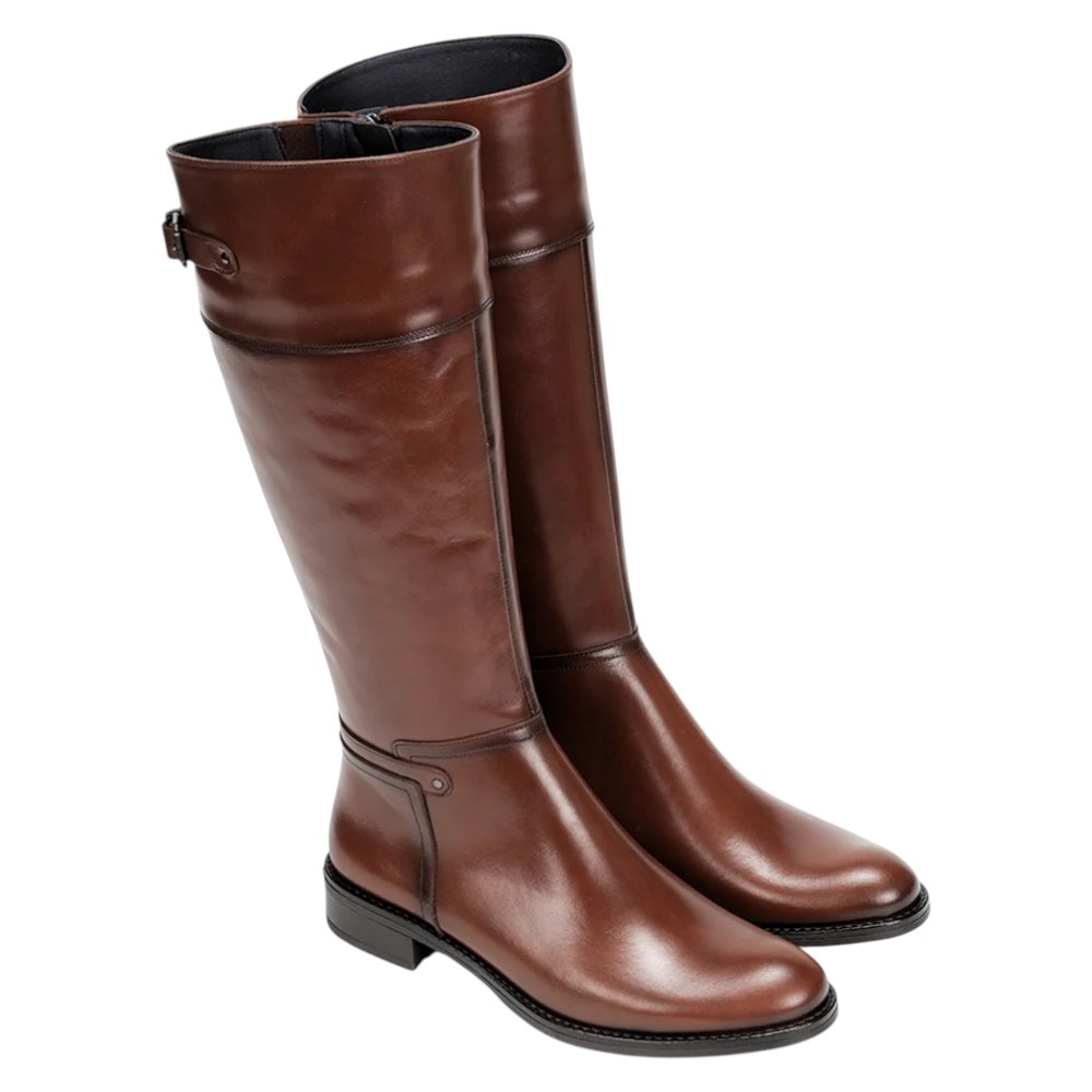 Estilo: Bota alta de montar o tipo riding boot con una silueta clásica y atemporal.