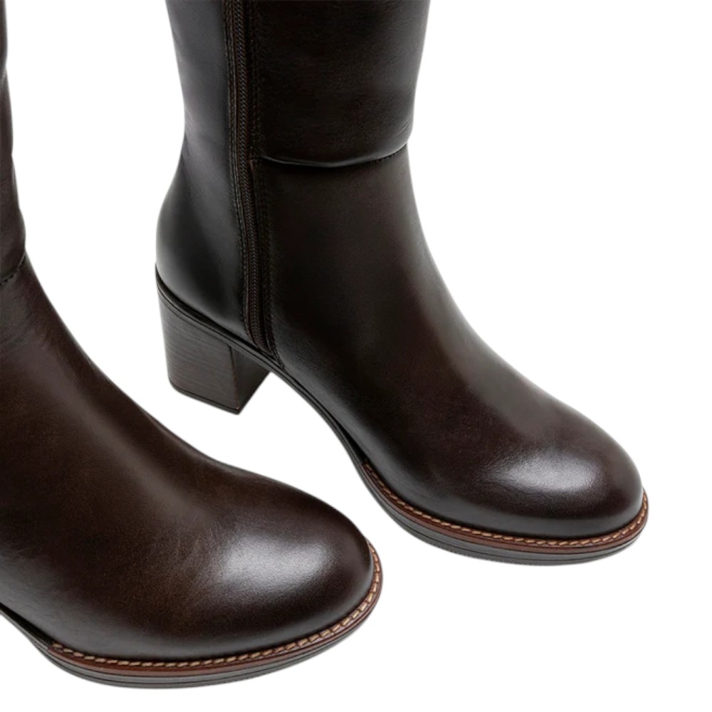 Diseño y Calidad: Elaboradas con un corte de piel de primera calidad, estas botas garantizan una óptima transpiración para el pie, asegurando que se mantenga cómodo durante todo el día. Su diseño de caña alta estiliza la figura y ofrece una estética atemporal.