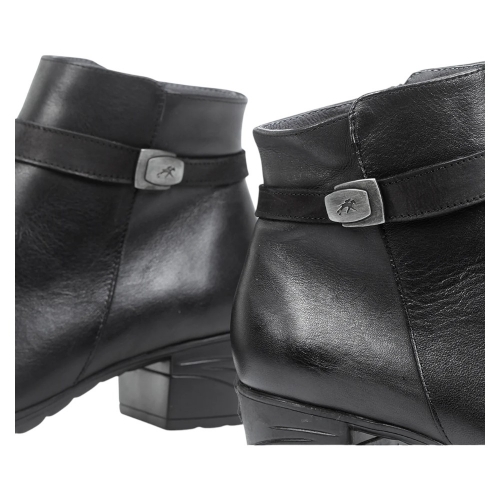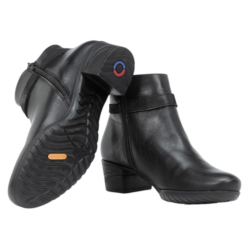 Diseño Práctico y Sofisticado: El cierre de cremallera lateral facilita el calce, mientras que la correa decorativa con hebilla añade un toque distintivo.