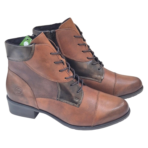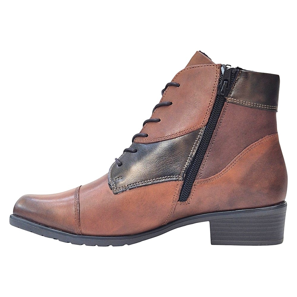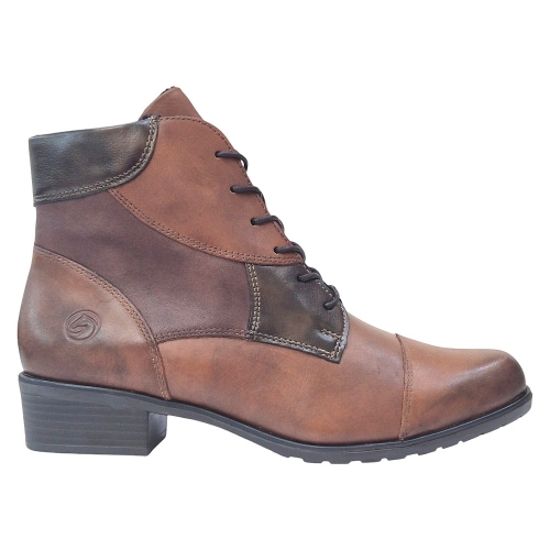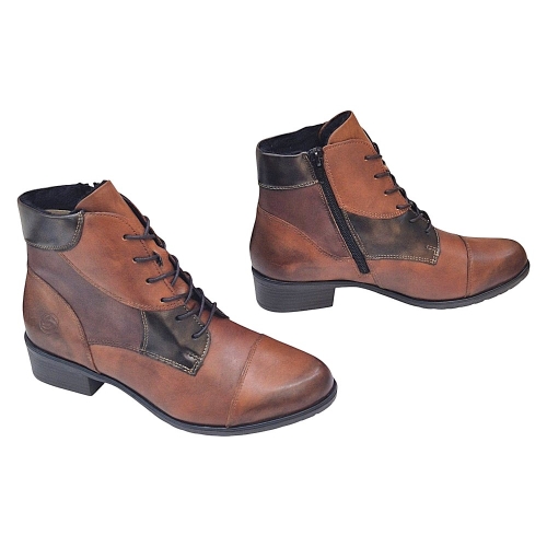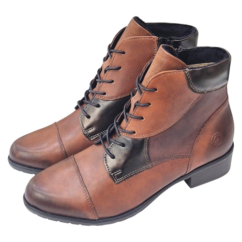 Detalles de Diseño: Diseño patchwork con diferentes paneles de piel, puntera redondeada y costuras decorativas que realzan su carácter casual y sofisticado. El logo de Remonte está grabado sutilmente en el lateral.