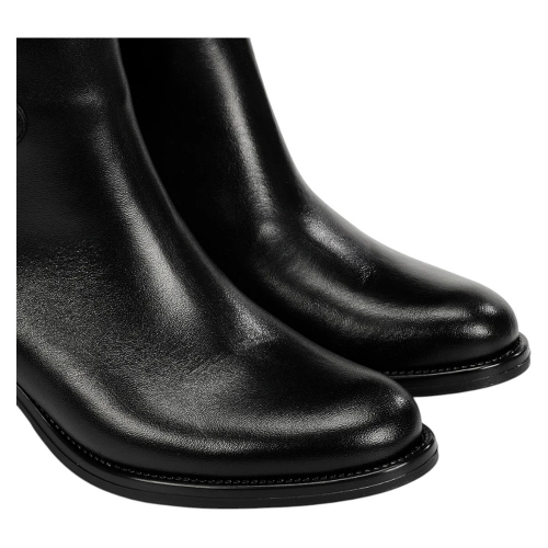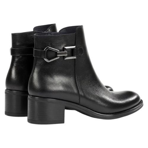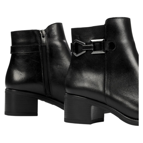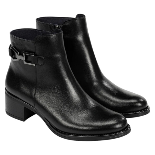 Confeccionados en piel de alta calidad, estos botines destacan por su diseño atemporal y su punta sutilmente estilizada, que añade un toque de refinamiento a cada uno de tus looks. El tacón de 5 cm ofrece la altura perfecta para estilizar tu figura sin sacrificar comodidad, permitiéndote llevarlos todo el día.