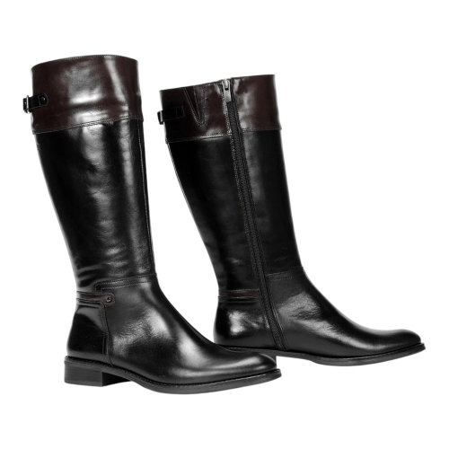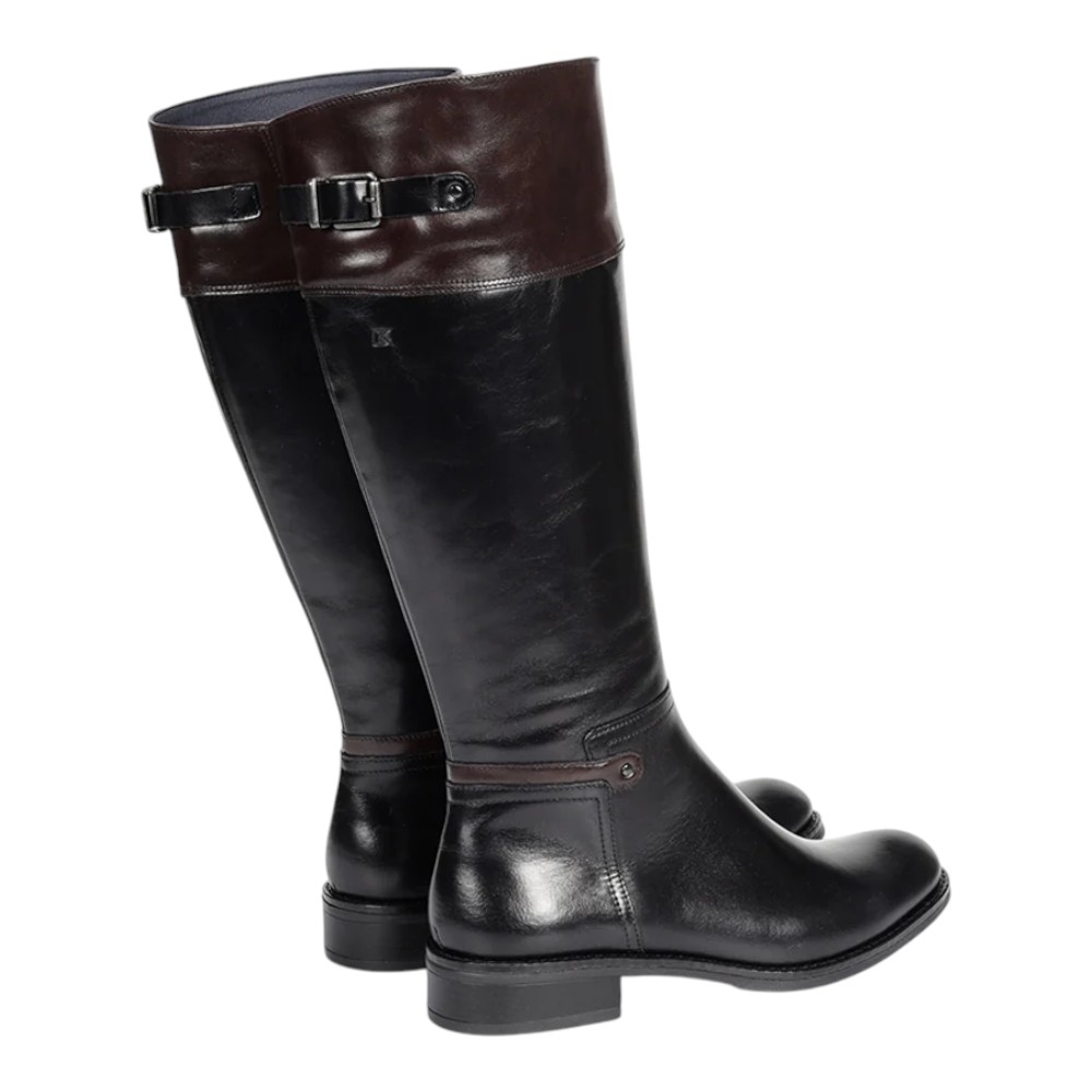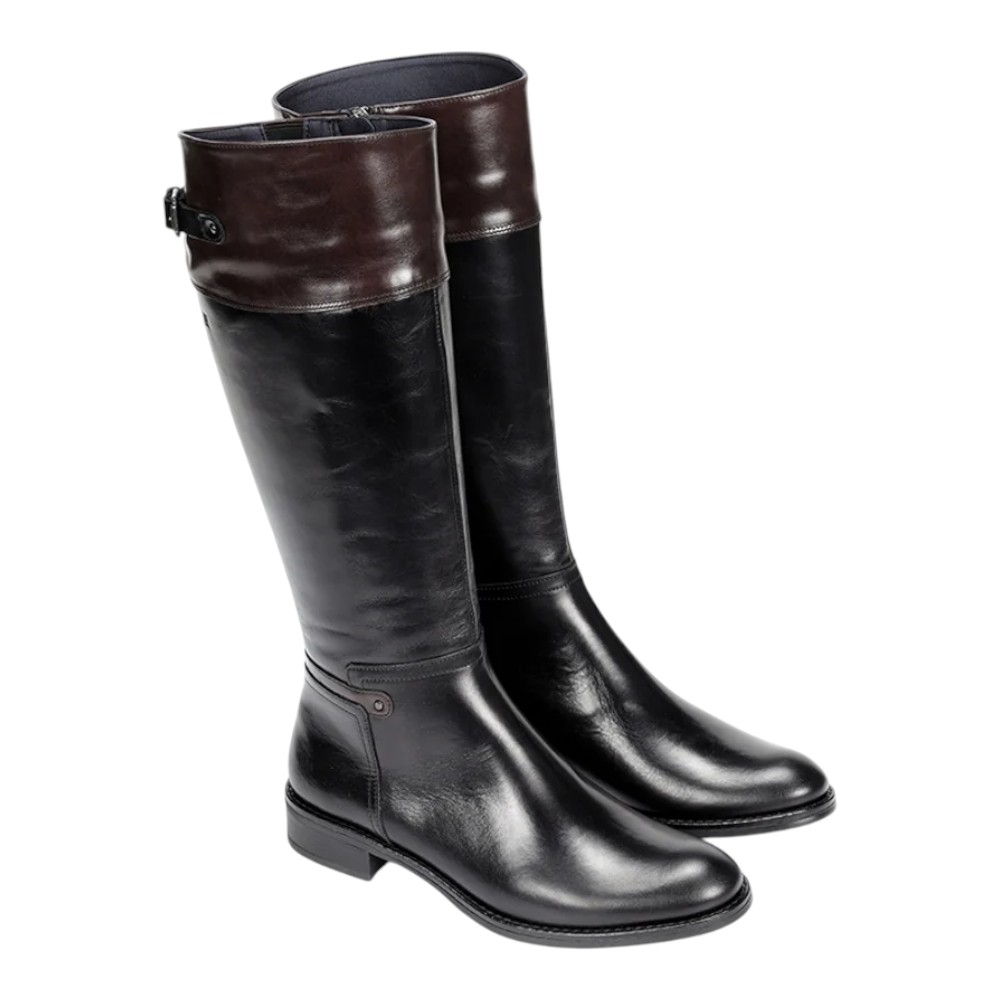 ¡La pieza clave que tu guardarropa necesita! Las botas altas Tierra D7687 de FLUCHOS están diseñadas para la mujer que ama los diseños renovados y las tendencias con un toque de sofisticación clásica. Combinando un cuerpo en piel de color Negro intenso con un detalle de caña en Marrón Café (Sierra), estas botas son la definición de la versatilidad elegante.