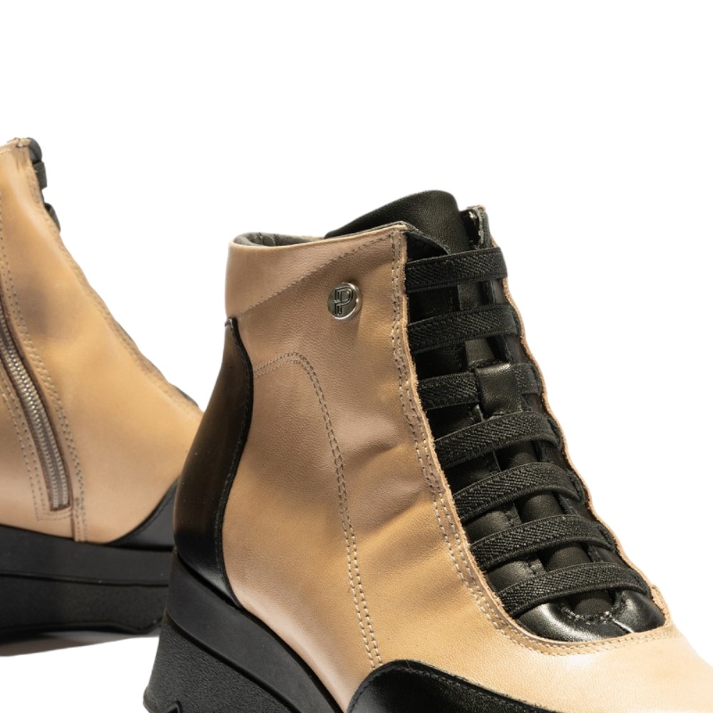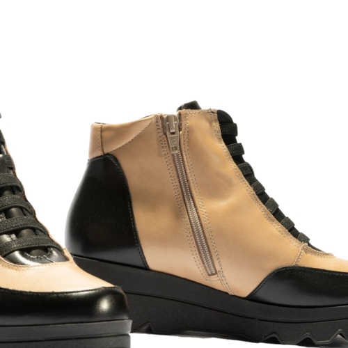 Nuestro Botín Bicolor con Elásticos de la colección de otoño-invierno es un botín corto de aspecto casual.