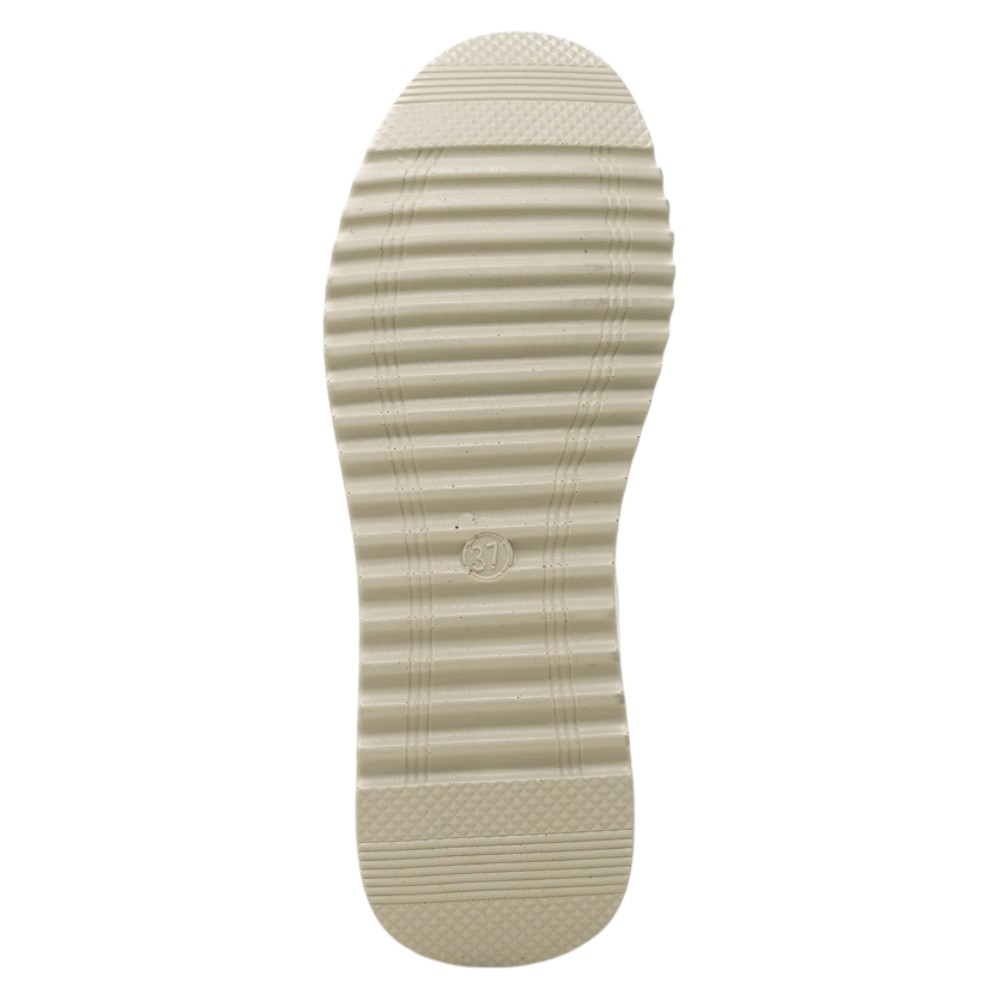 Suela Cómoda y Ligera: Montado sobre una suela tipo cuña media o plataforma, fabricada en material ligero como EVA, con un acabado dentado o estriado que ofrece buen agarre. La horma es generalmente amplia, proporcionando mayor espacio y confort al pie.