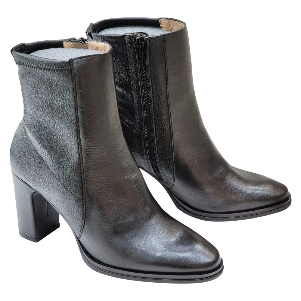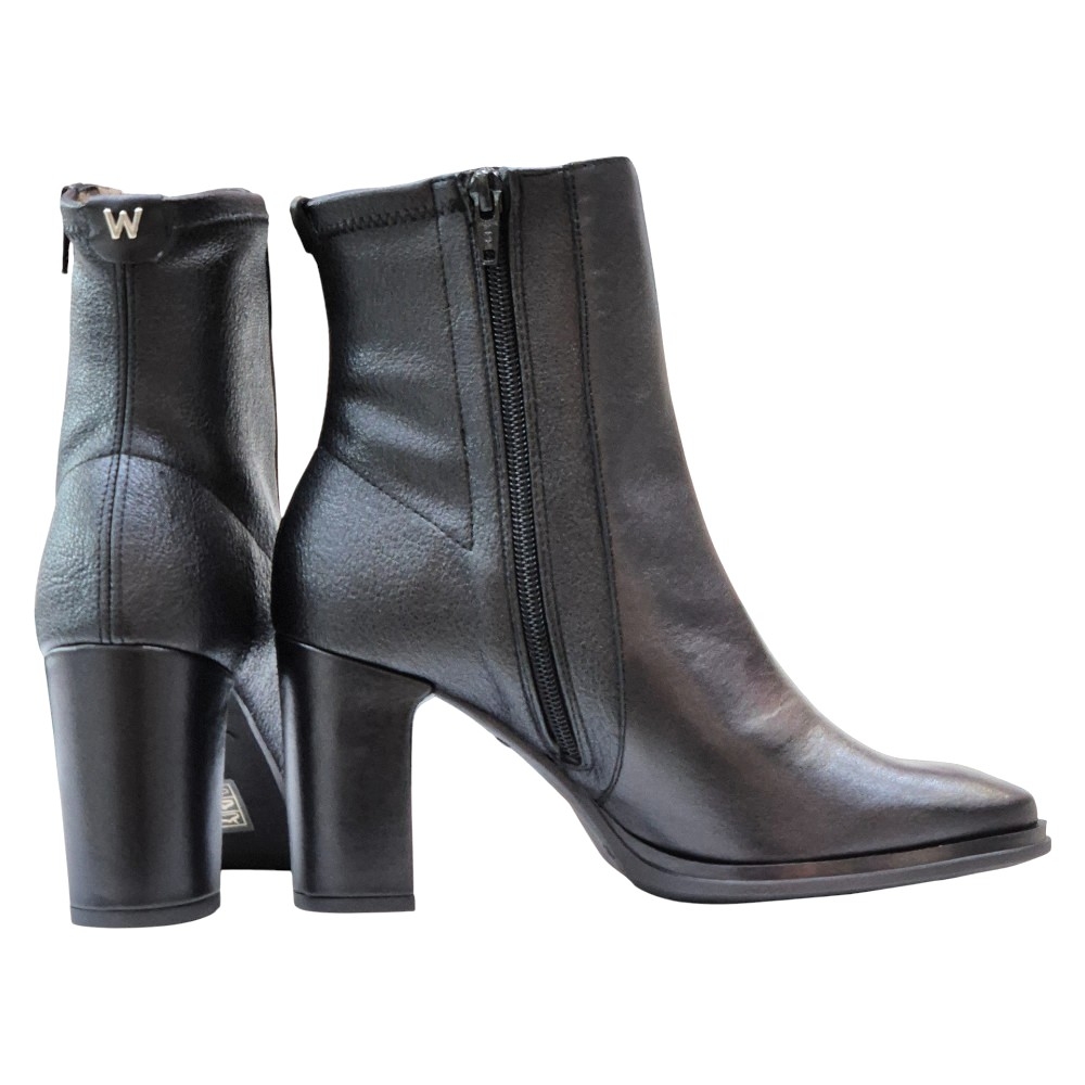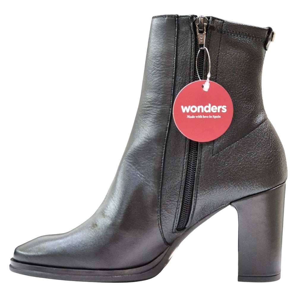 Descubre la elegancia atemporal y el confort inigualable con estos sofisticados botines de la marca española WONDERS. Fabricados en piel lisa negra de alta calidad, este diseño es la definición de estilo y versatilidad.