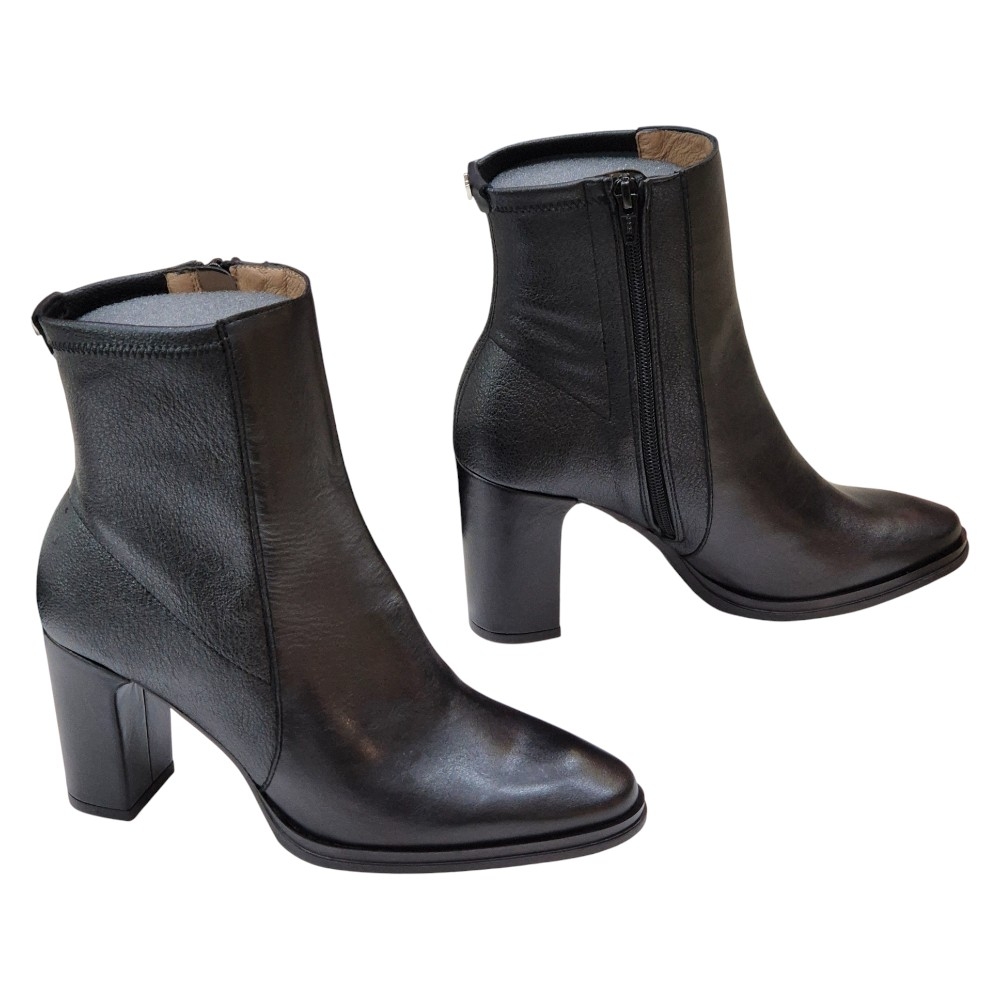 Botines de Piel Negra con Tacón de Bloque y Puntera Afilada | Wonders