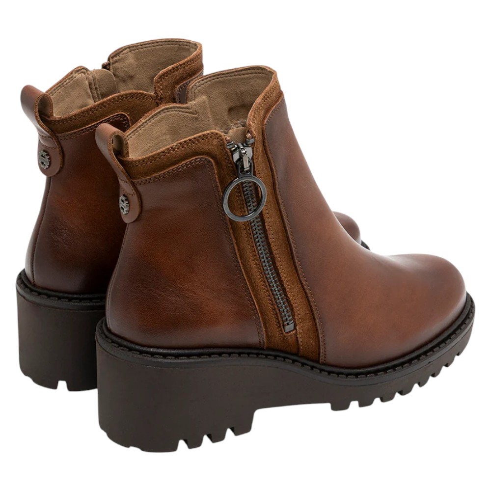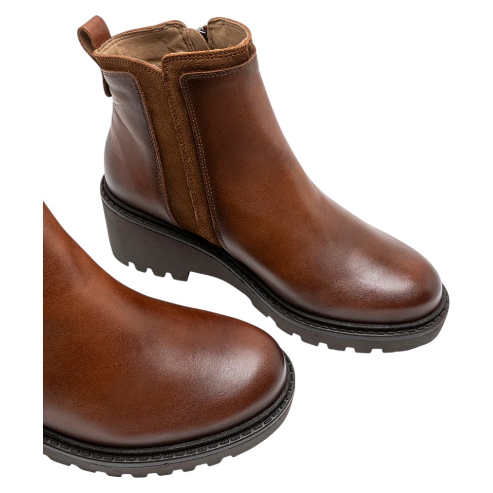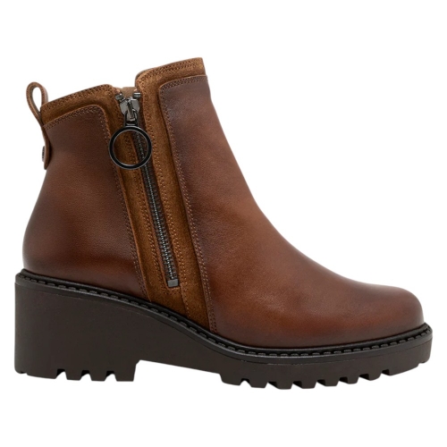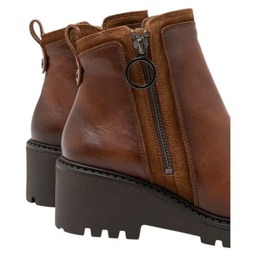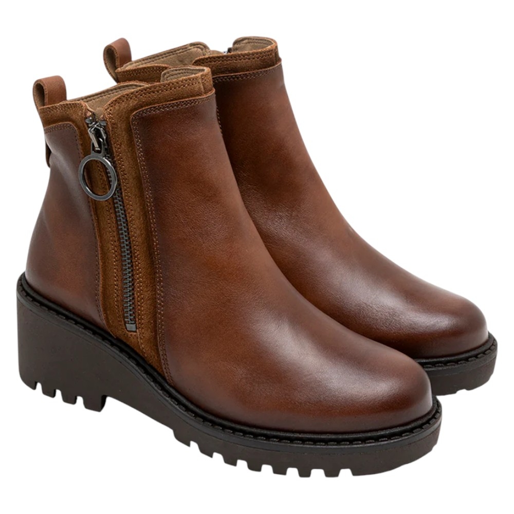 Botín de Piel y Serraje con Cuña y Cremallera