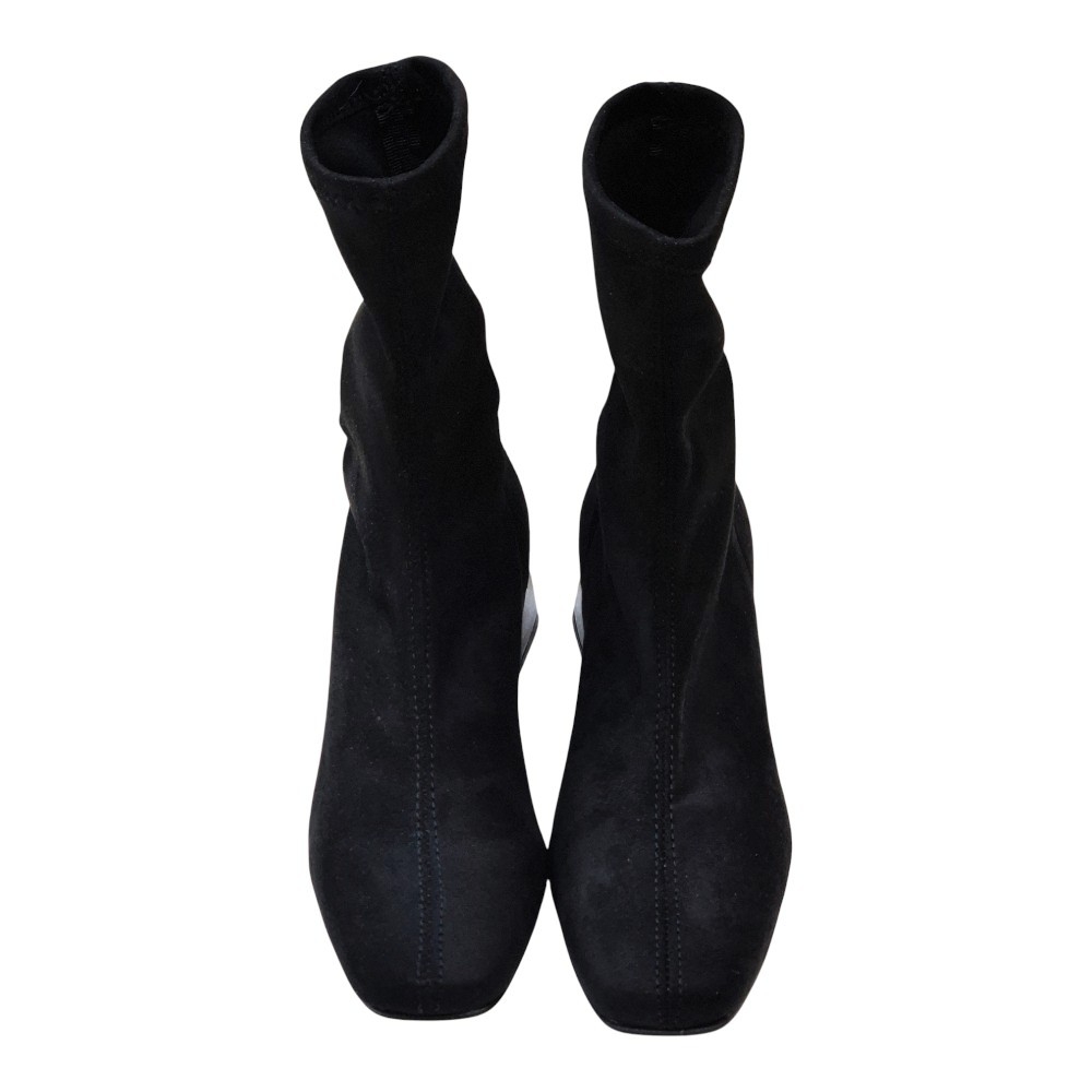 El modelo destaca por su acabado en Ante Stretch (Gamuza Elástica) en color negro profundo, un material que no solo aporta una textura lujosa y suave al tacto, sino que permite que la caña se ajuste de forma impecable al contorno de tu pierna, creando un efecto "segunda piel" muy favorecedor.
