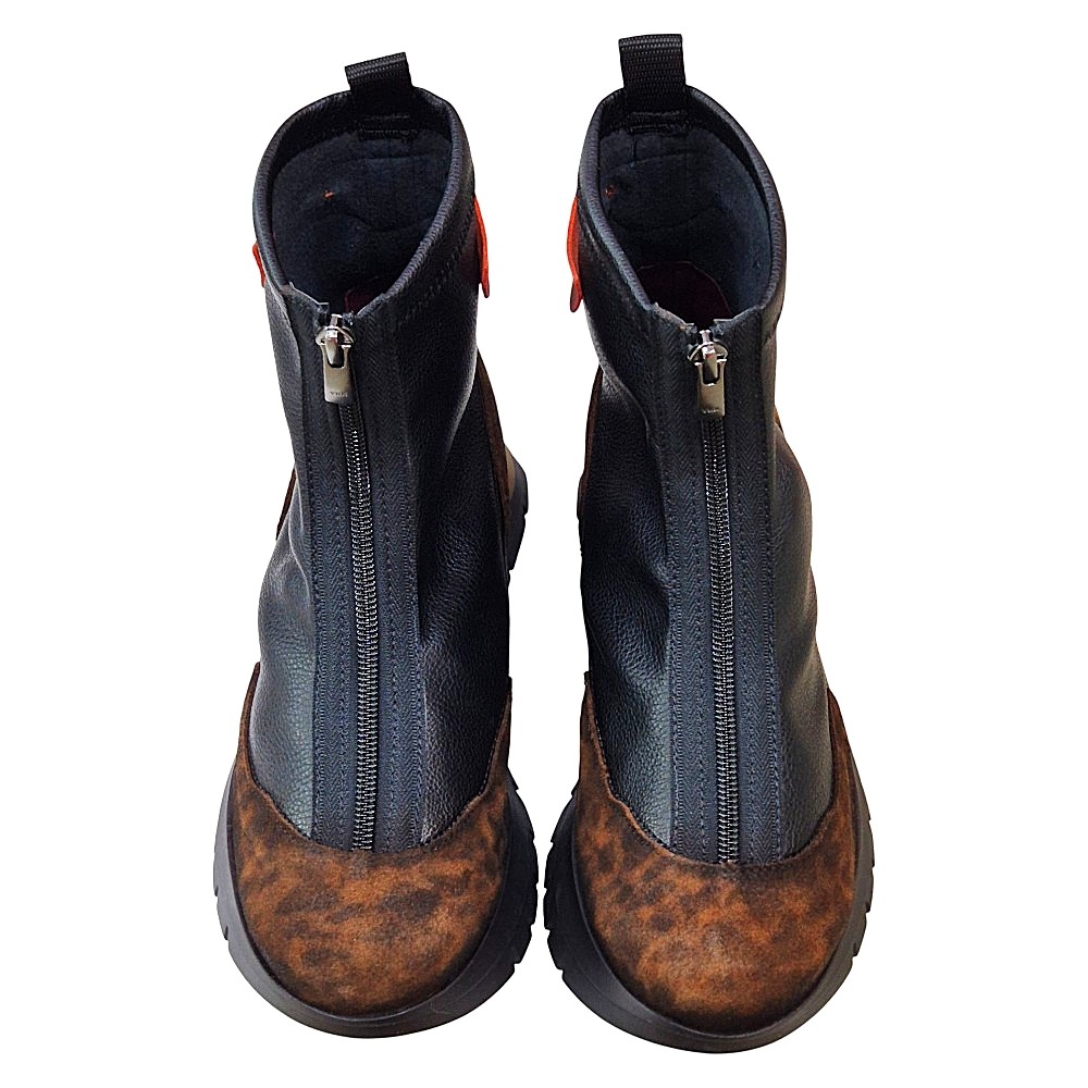 Cierre: Caracterizado por una cremallera central vertical dispuesta en la parte frontal. Este elemento no solo define la estética moderna del botín, sino que también facilita un calce y descalce rápido y cómodo.