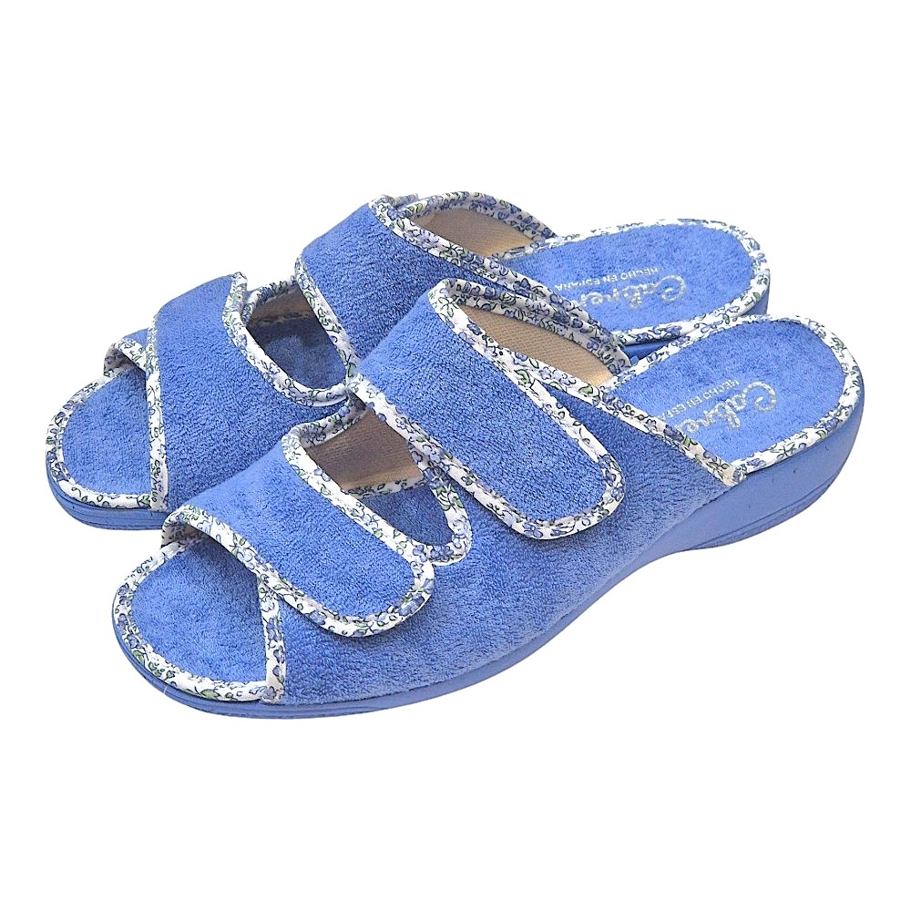 Estas zapatillas combinan a la perfección la funcionalidad y el estilo. Su suave tejido de toalla te envolverá en una sensación de confort inigualable, mientras que su diseño con doble velcro asegura una sujeción segura y adaptable. El color aguamar y el detalle floral aportan un toque de frescura y elegancia a tus momentos de descanso en casa.