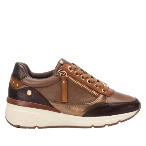 Zapatilla de mujer, de la marca Carmela. Fabricada en piel de alta calidad. Cierre mediante cremallera lateral y cordones ajustables. Sencilla y elegante, un básico para tu armario. Suela de goma con volumen antideslizante. Con plantilla extraíble.
