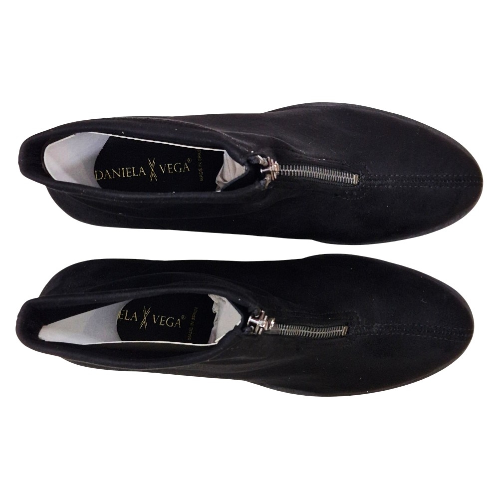 Marca: DANIELA VEGA Modelo: B2506 Color: NEGRO ANTE STRECH Material Principal: Textil tipo Ante/Gamuza Elástica (Stretch)
