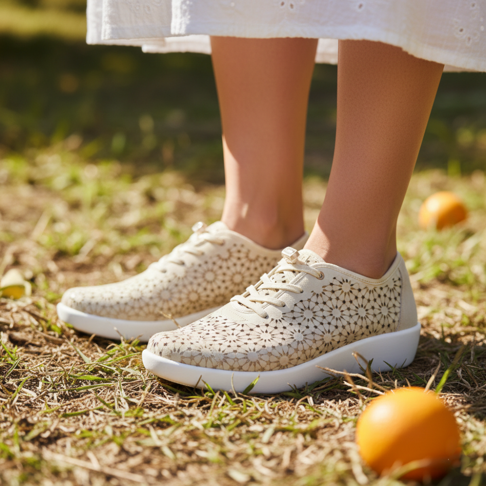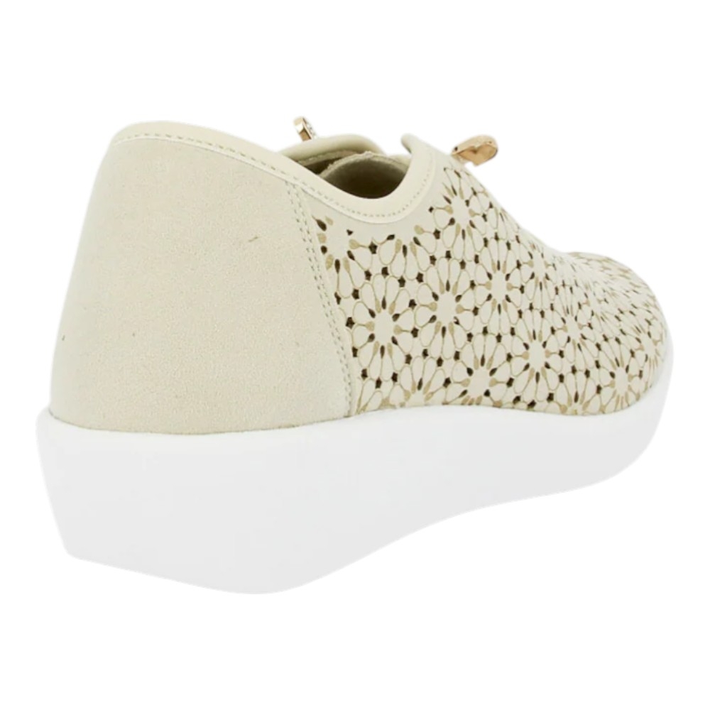 Este calzado destaca por su elaborado picado mediante tecnología láser, que no solo aporta un toque estético sofisticado, sino que garantiza una ventilación constante del pie, manteniéndolo fresco incluso en las jornadas más calurosas de la temporada primavera-verano. El material exterior sintético de alta calidad se adapta suavemente a la forma del pie, mientras que el talón reforzado proporciona la estabilidad necesaria para caminar con seguridad.