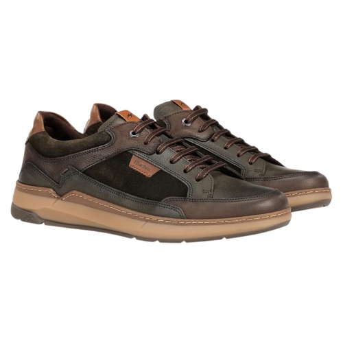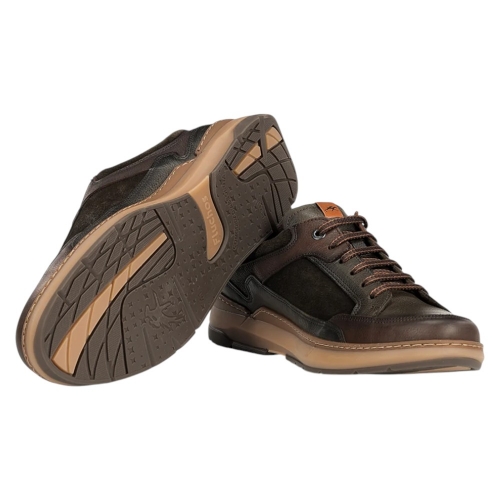 Elaboradas con materiales de primera calidad, las Jeff destacan por su impecable combinación de texturas. El empeine, confeccionado en suave nobuck, se complementa con detalles en cuero para crear un diseño dinámico y sofisticado. Su color marrón oscuro y los sutiles toques de tonos más claros las convierten en un calzado atemporal, fácil de combinar con jeans, pantalones chinos o incluso atuendos más formales.