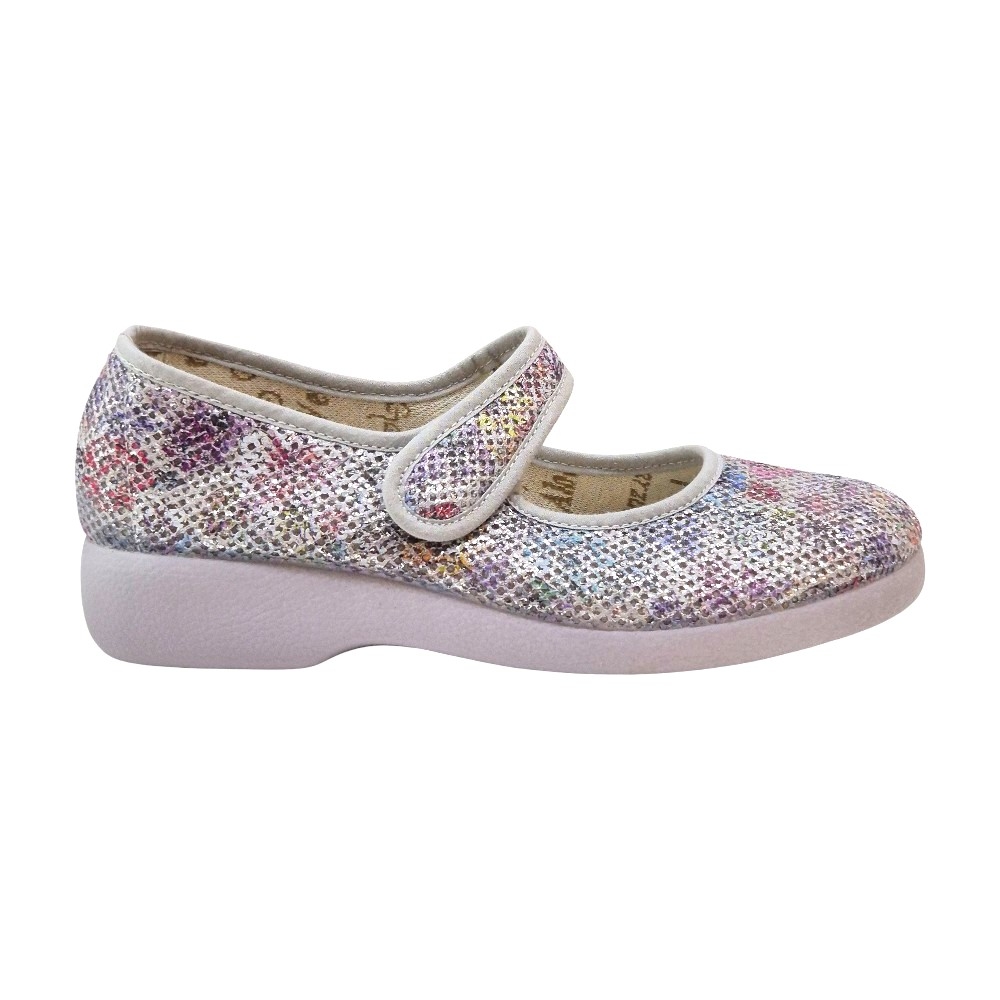 Diseño Tipo Merceditas: Su estructura clásica cuenta con una correa ajustable sobre el empeine que permite adaptar el calzado a la anchura del pie, proporcionando una sujeción segura y estable al caminar.