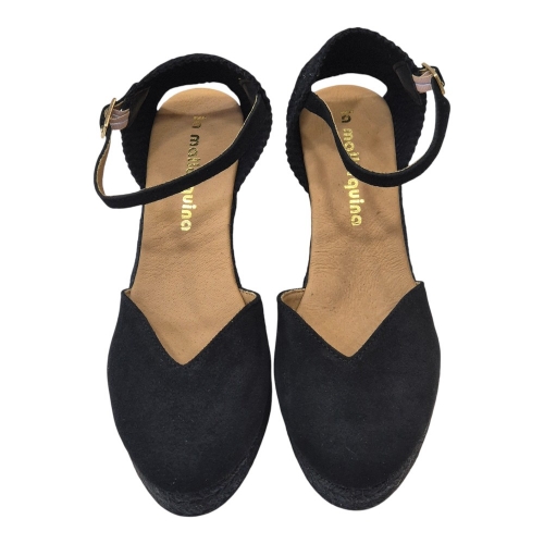 No te pierdas la oportunidad de añadir estas elegantes y cómodas alpargatas de cuña negra de La Mallorquina a tu colección de calzado. ¡Un imprescindible para esta temporada!