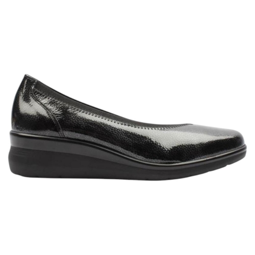 Confeccionada en un sofisticado charol negro texturizado, esta bailarina aporta un toque de brillo y distinción a cualquier look. Su diseño está pensado para la mujer que no renuncia a la moda por la comodidad.