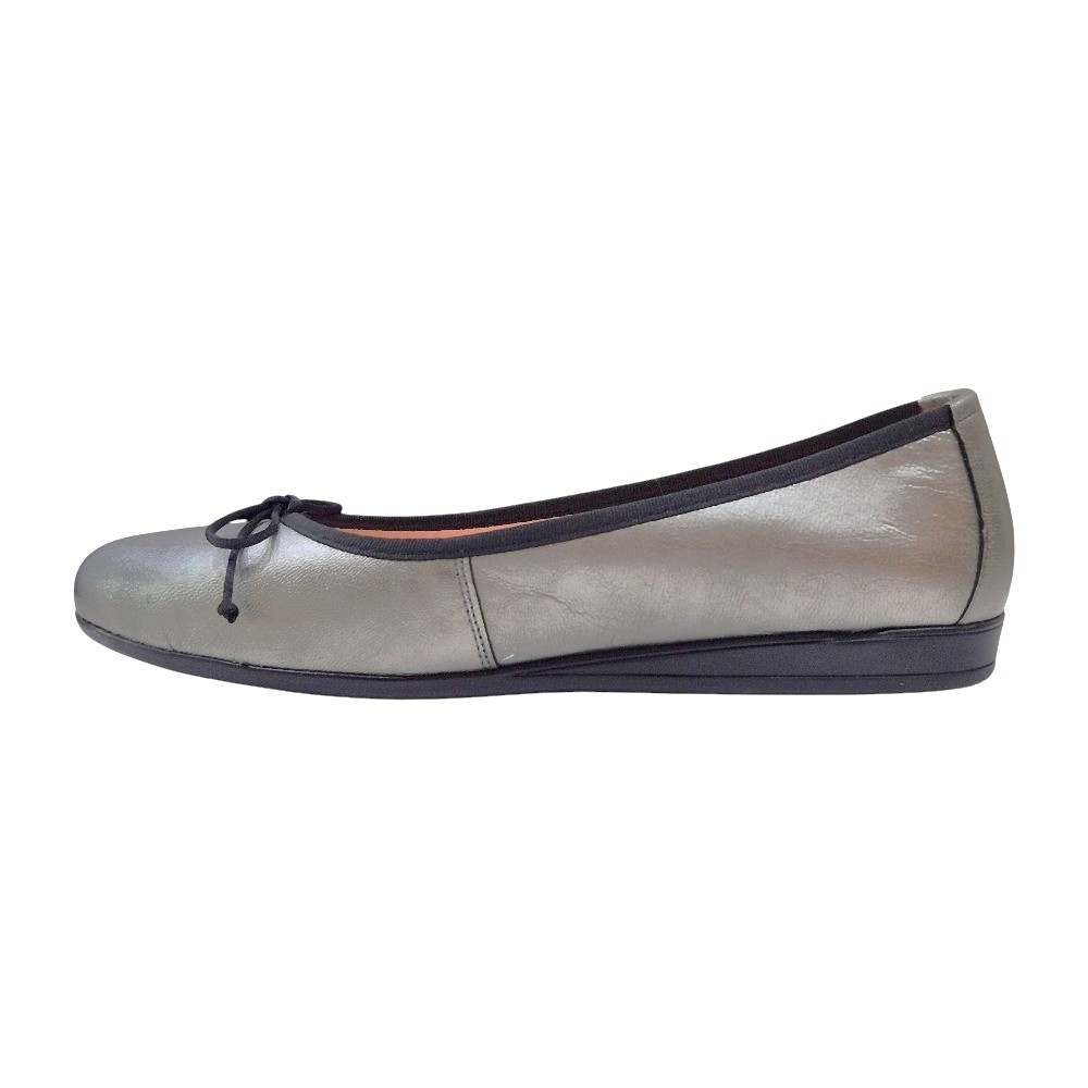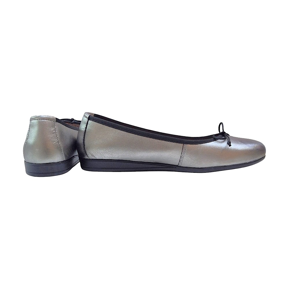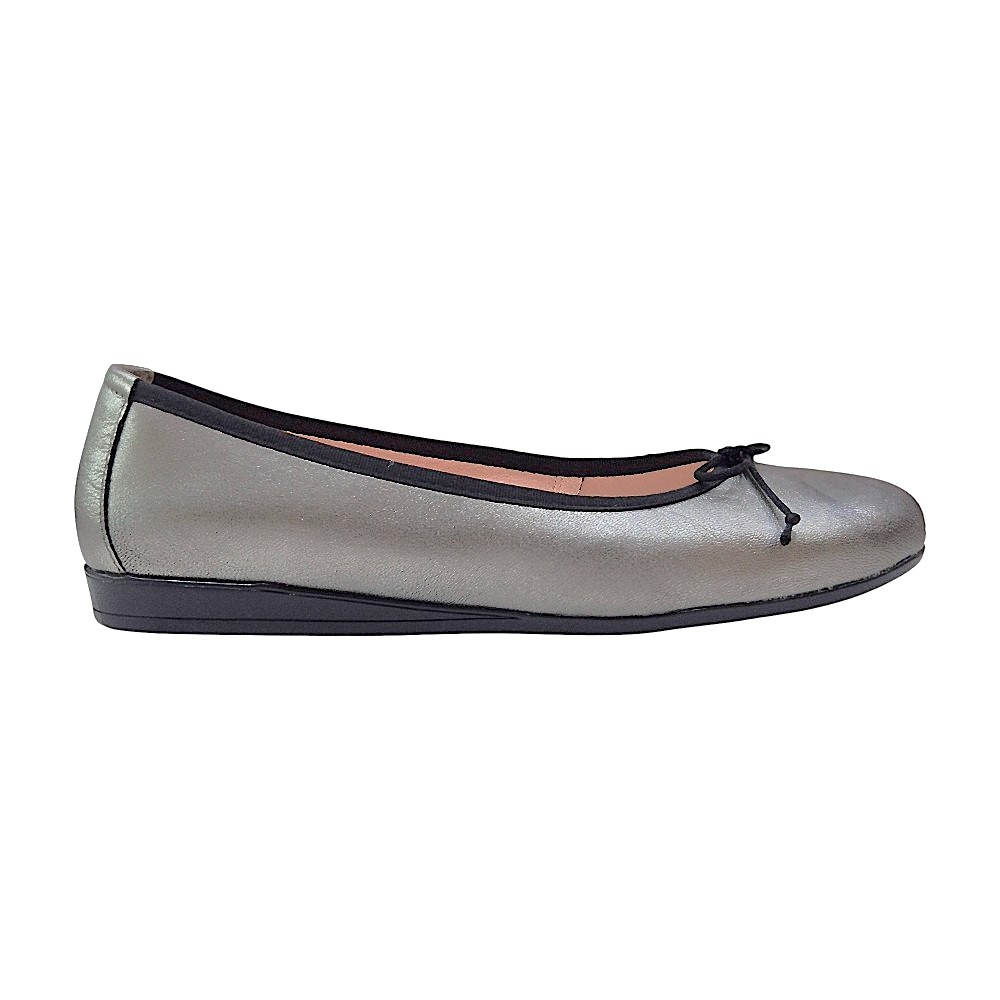 Acabados en Contraste: Presentan un ribete y un lazo decorativo en la puntera de color negro, creando una definición visual nítida y sofisticada que contrasta con el tono plomo.