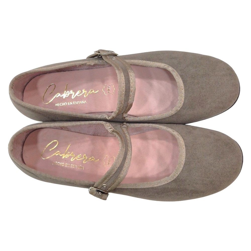 Estas merceditas de la marca Cabrera presentan un diseño clásico y atemporal, perfectas para un fondo de armario elegante y confortable. El modelo 706 está confeccionado en suave piel serraje (ante) de alta calidad en un sofisticado color Suede Taupe (gris topo), que las convierte en un calzado versátil y fácil de combinar.